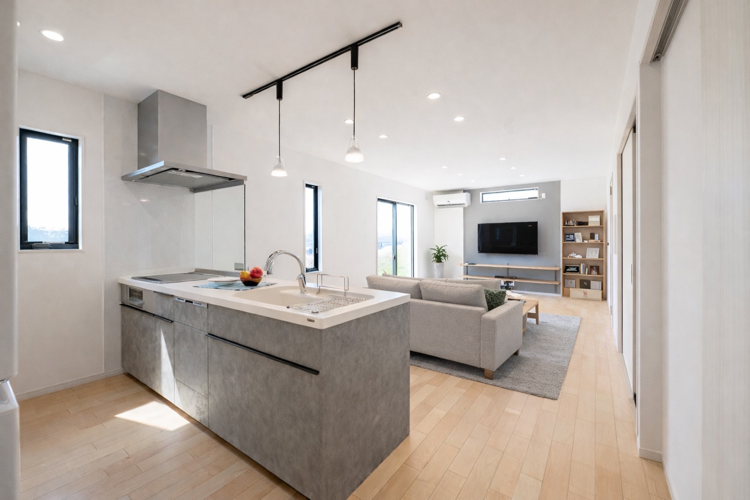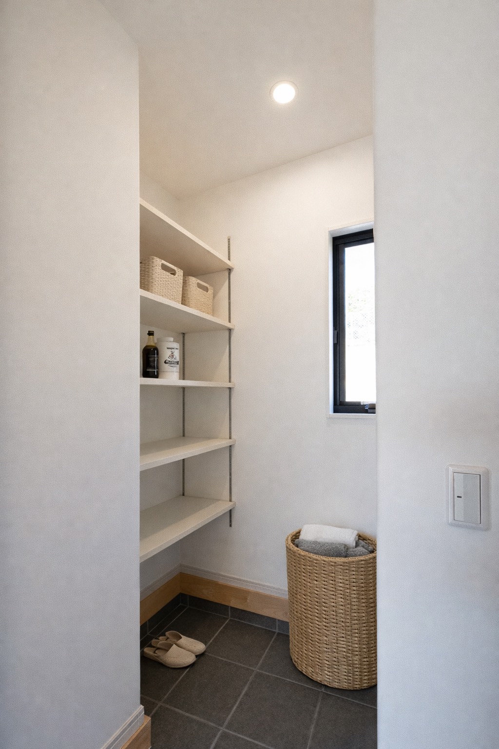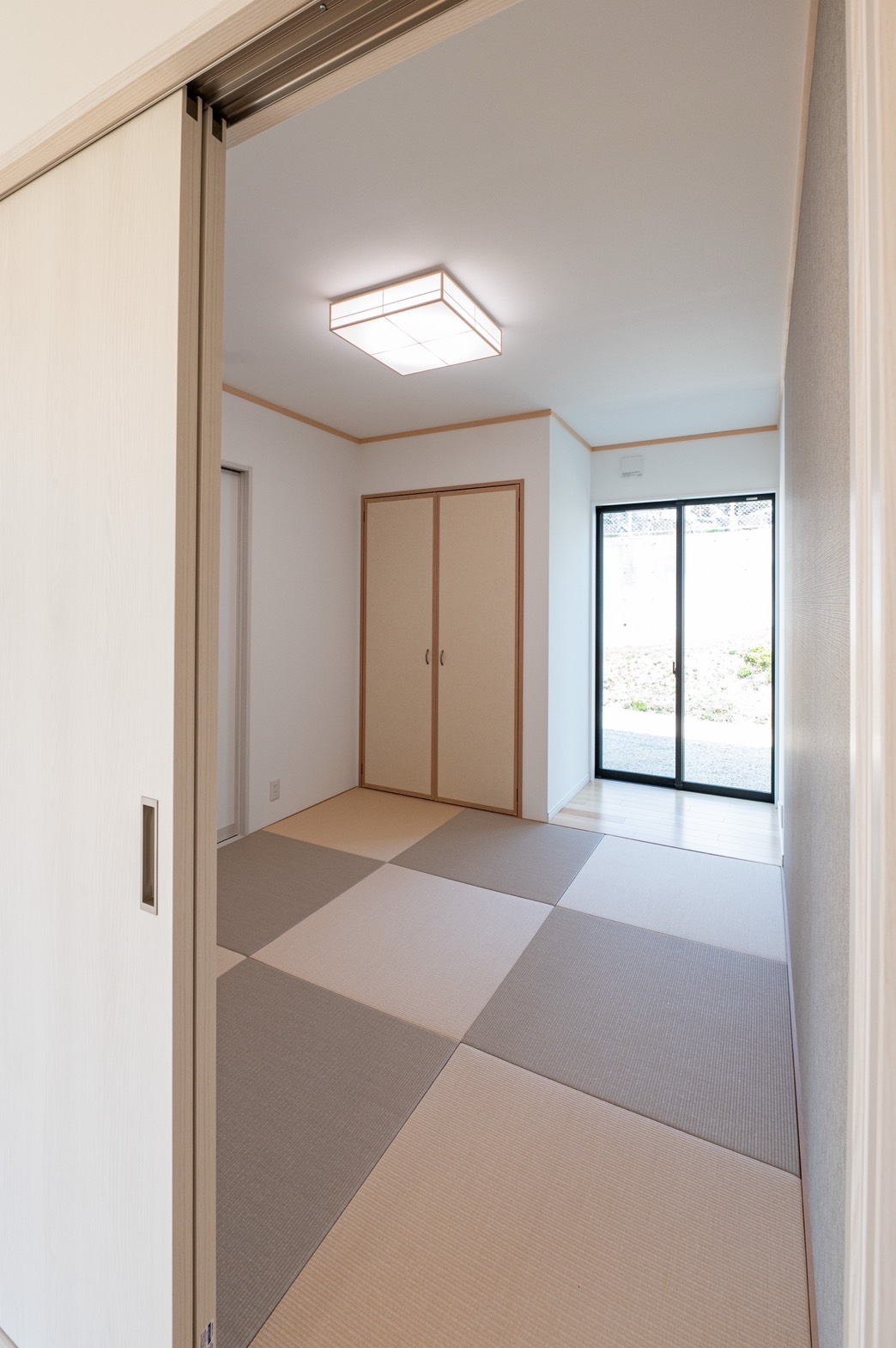 小高い丘を立地としたこの平屋。お子さんが巣立った後に夫婦二人で住むことを考えて建てられました。 玄関を入ると2人暮らしには充分なほどのシューズクローク。和室は玄関からも出入り可能で客間として利用可能。18帖の広いリビングからはこの立地だからこその眺望が広がっています。そこから見える家々や田畑は朝、夕の日で違った景色に見えました。リビングを抜けると、夫婦の寝室、2部屋の洋室。夫婦以外のこの部屋は、お子さんの帰省や将来的なご夫婦の親御さんとの同居を見据えて設計したもの。現在(いま)だけでなく、将来的な生活の変化にも耐えうる考えられた間取となっています。