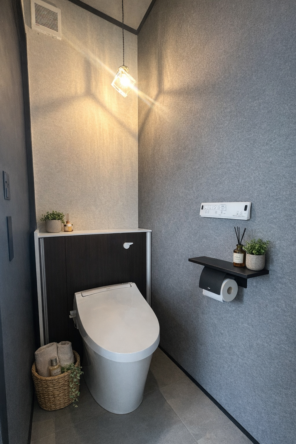 落ち着いた配色で統一した、ホテルライクなトイレ。