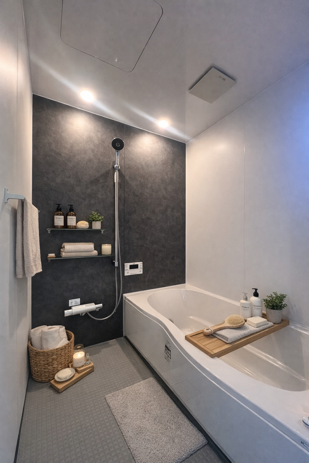 上質なアクセントパネルが映える、くつろぎのバスルーム。