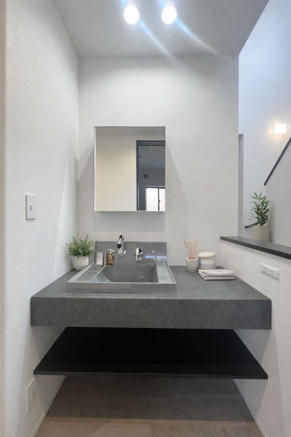 シンプルで洗練された、使い勝手の良い洗面空間。