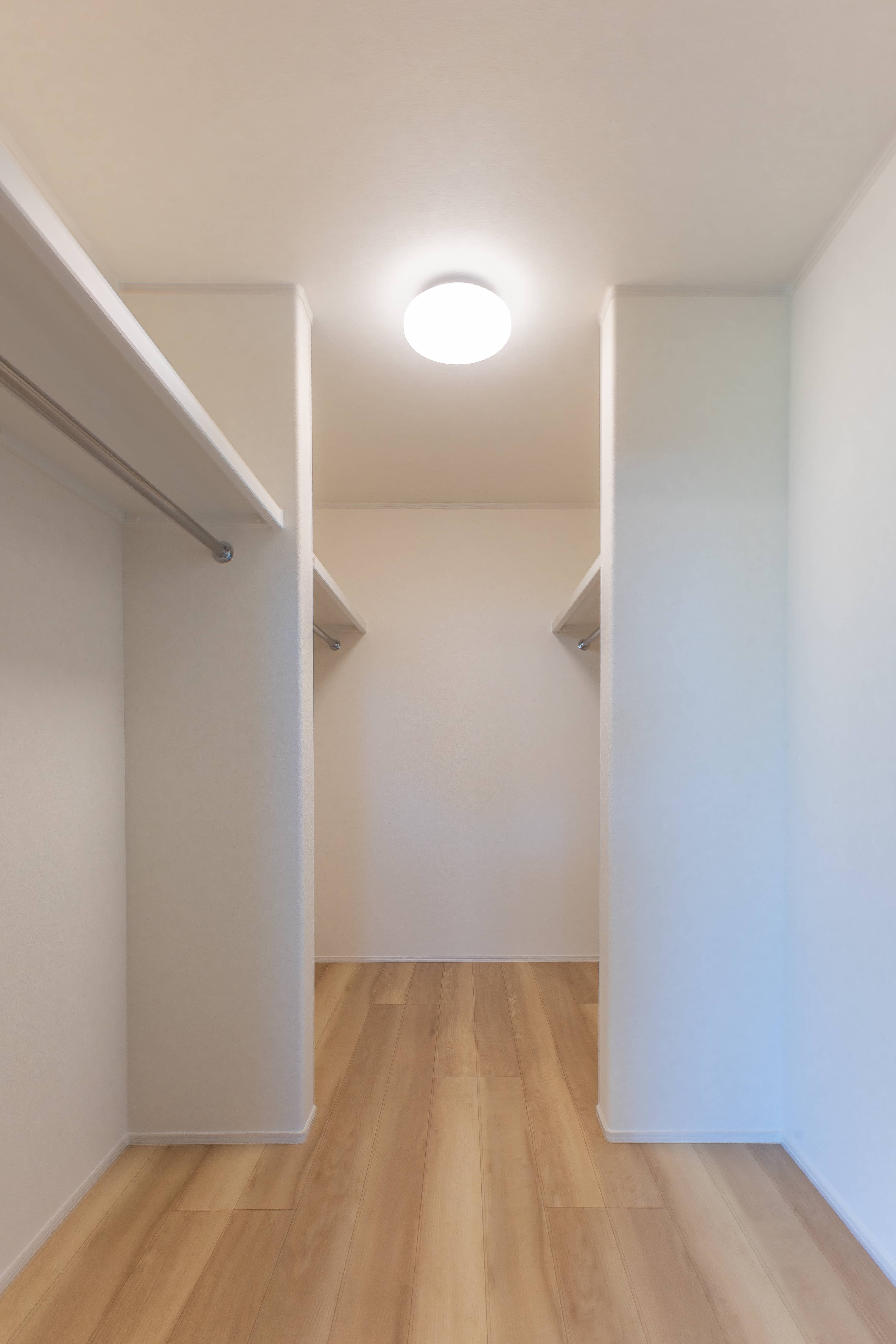 各部屋からアクセスしやすい位置に設けたファミリークローゼット。収納力と使いやすさを兼ね備えた便利なスペースです。