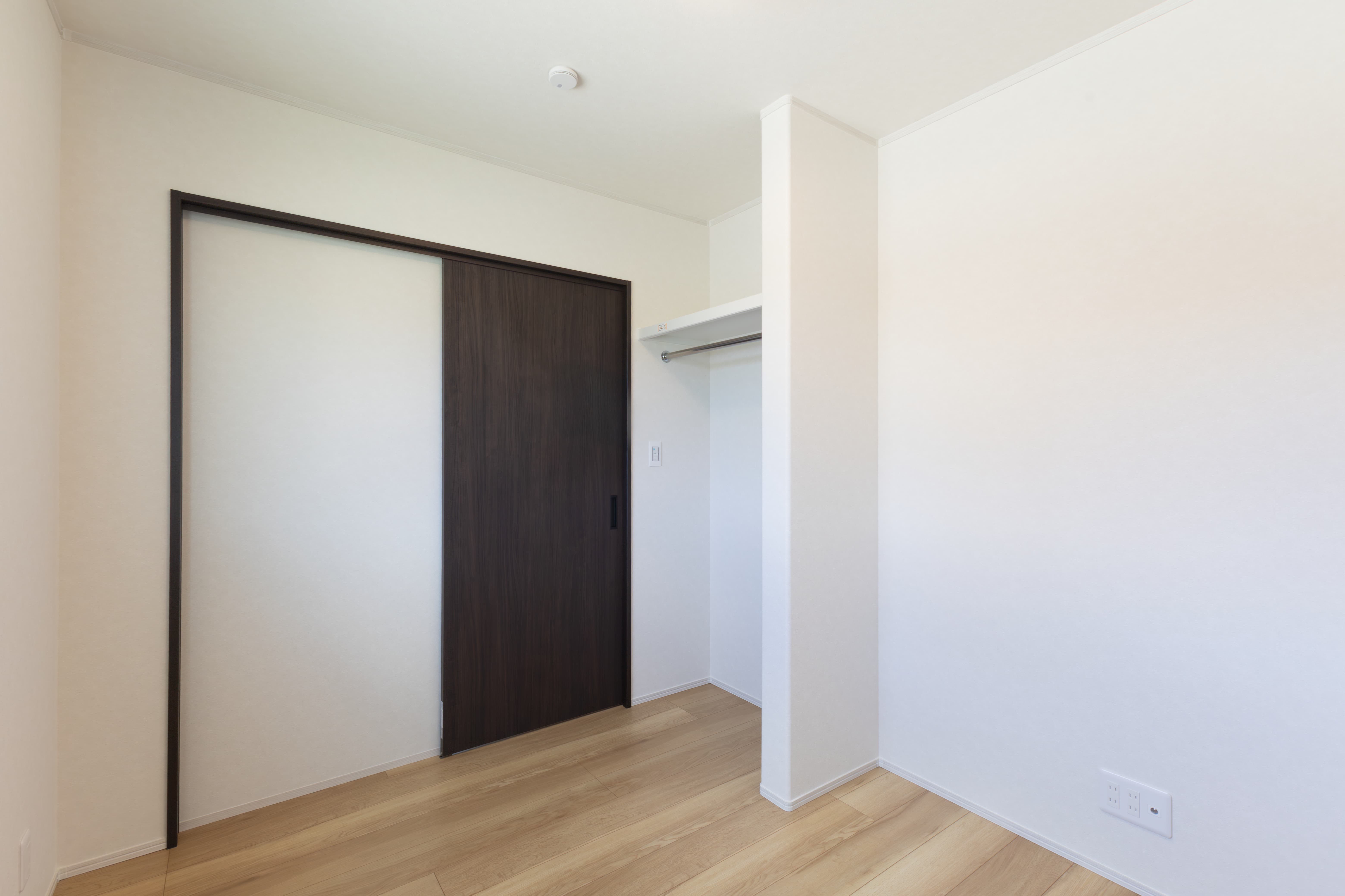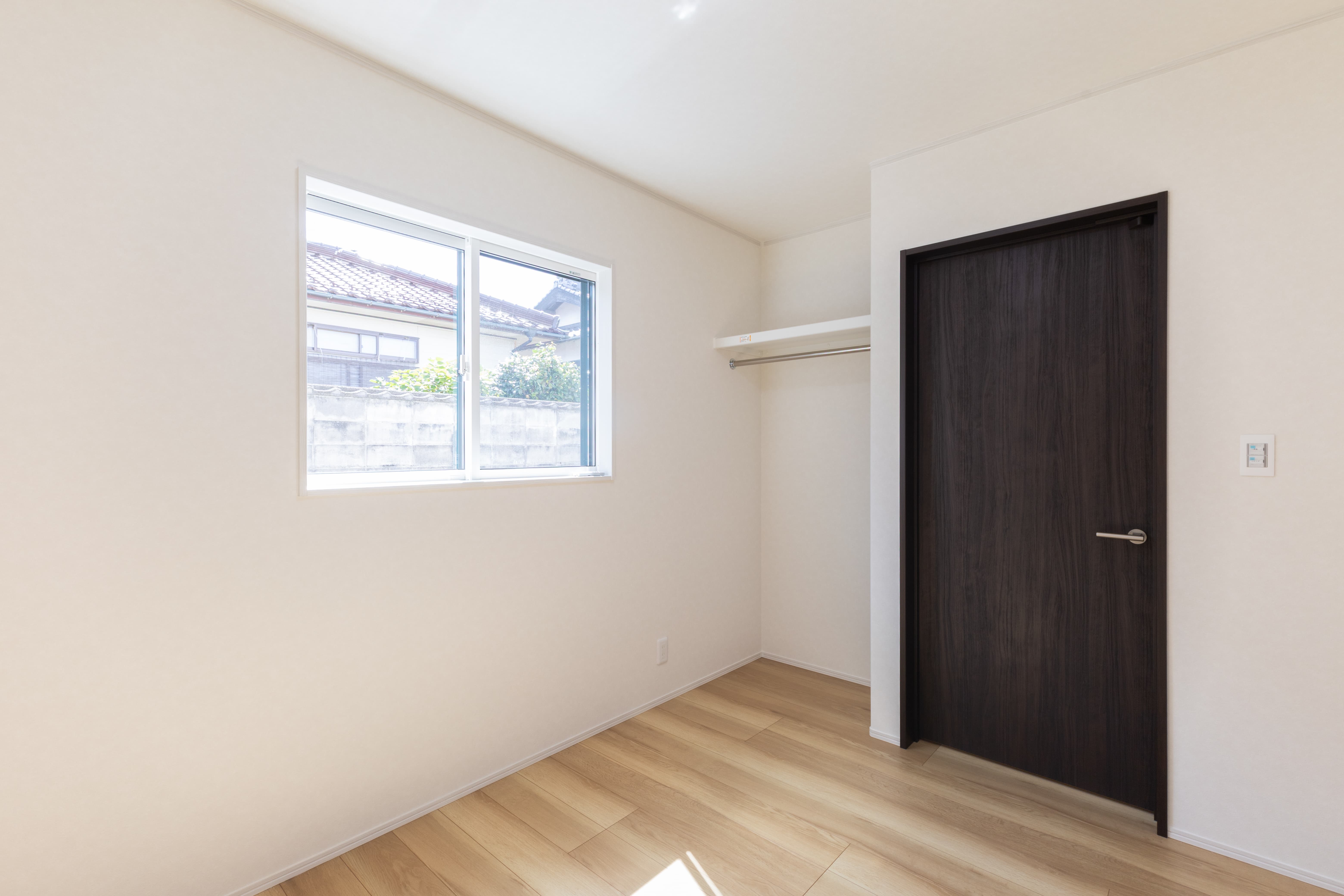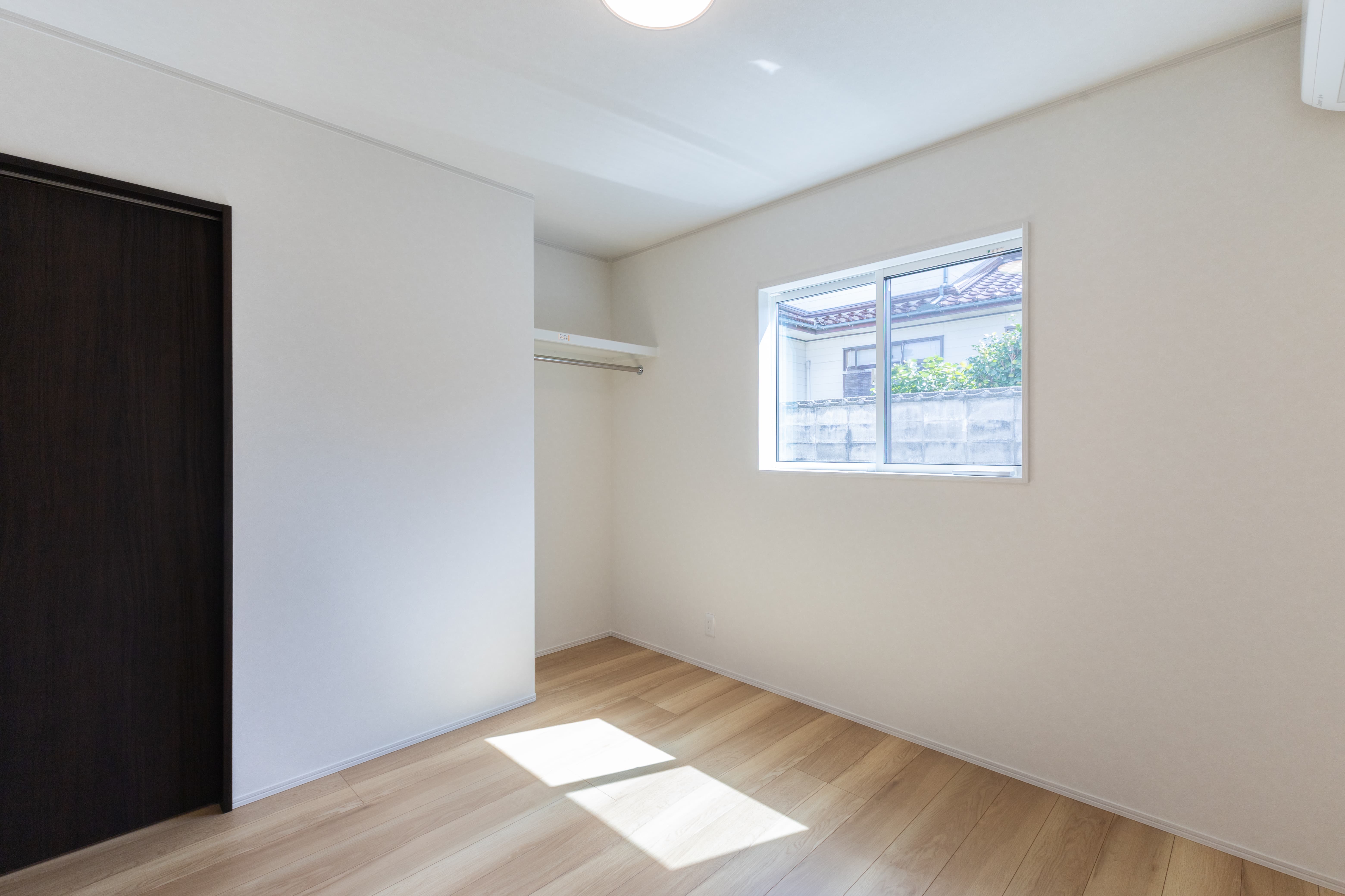 5.74畳の主寝室。オープンタイプの収納を設置。