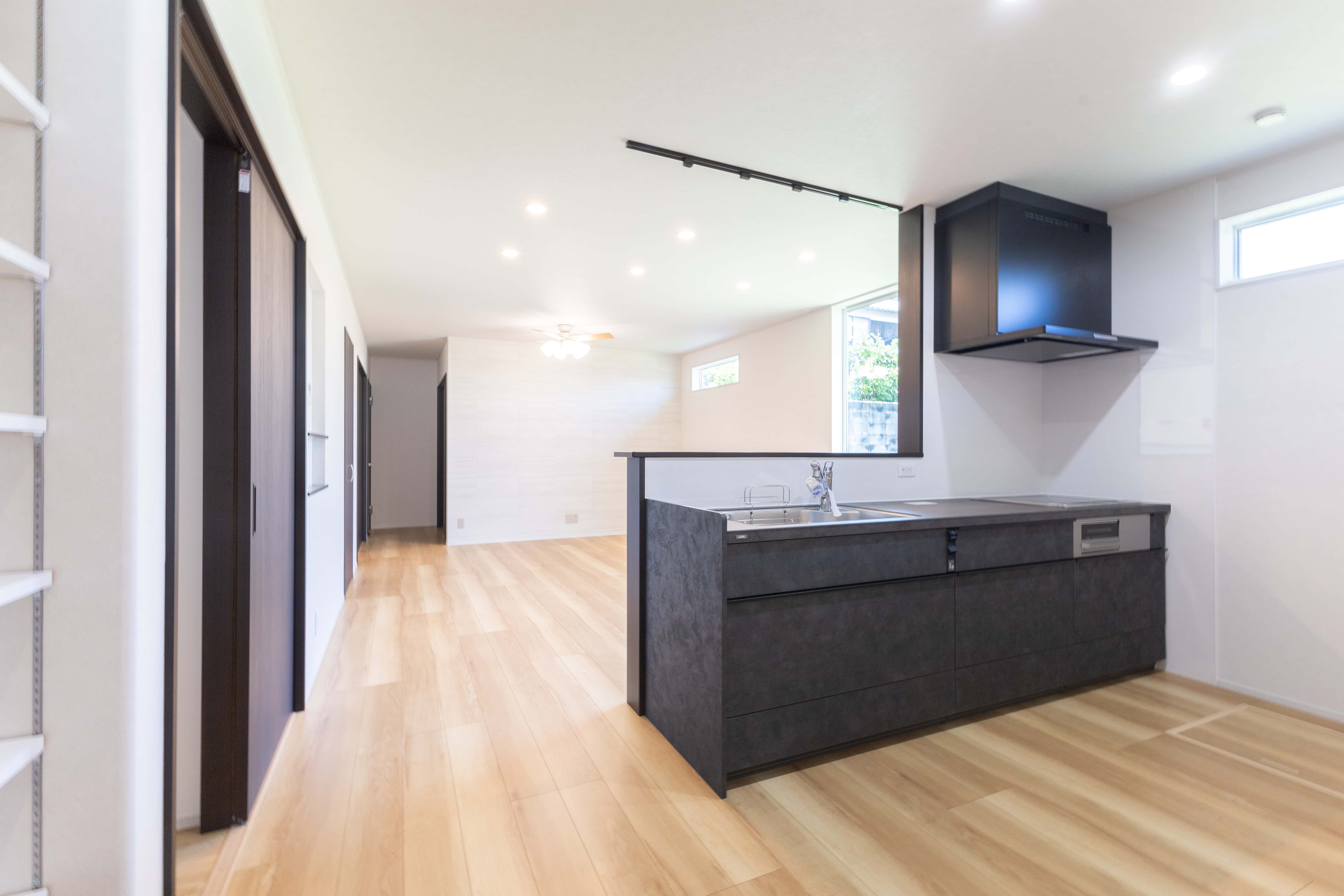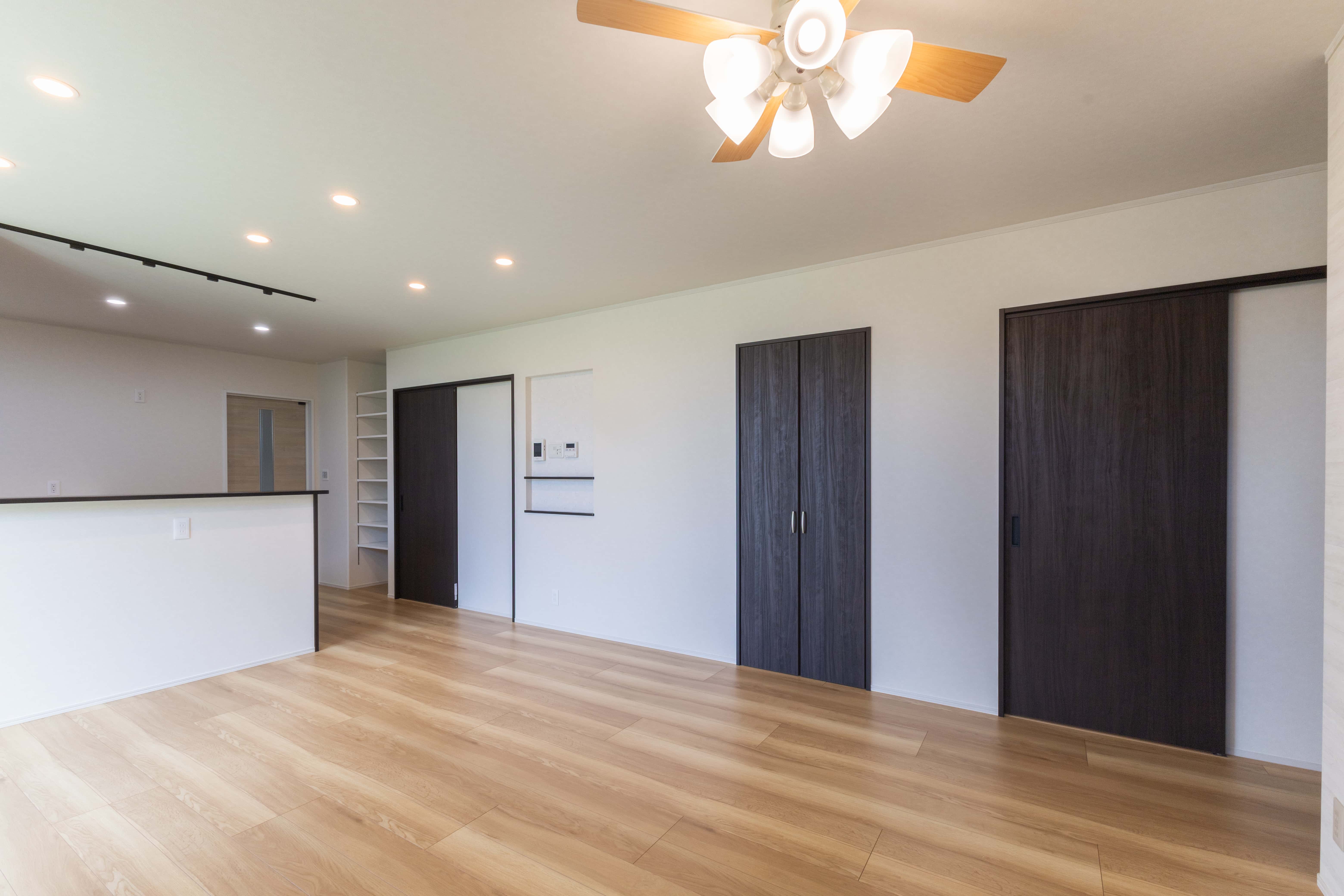 約20畳のLDKは、お施主様のご要望で“広すぎず・狭すぎない”ちょうどいい広さに。家族が自然と集まり、心地よく過ごせる空間に仕上がりました。