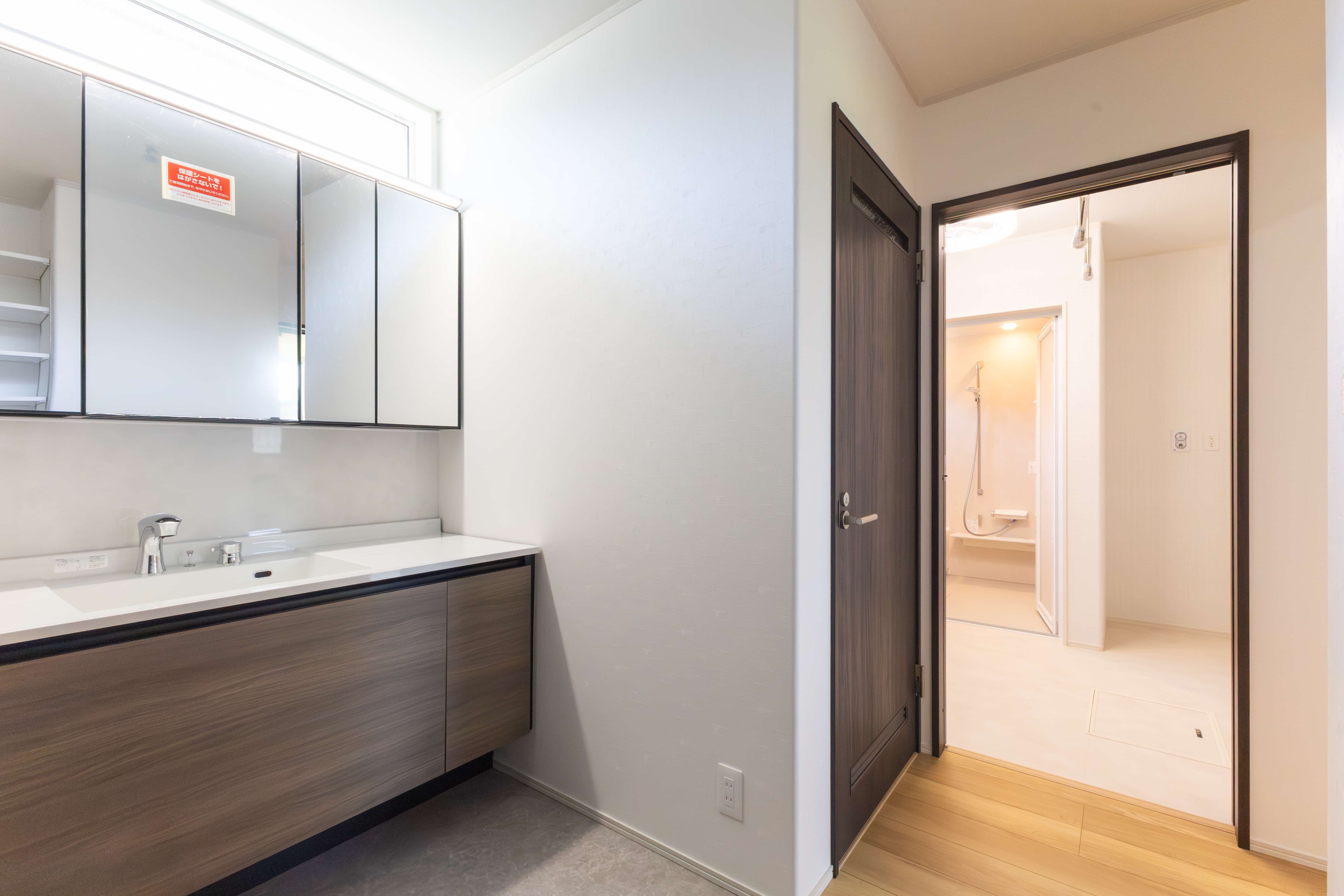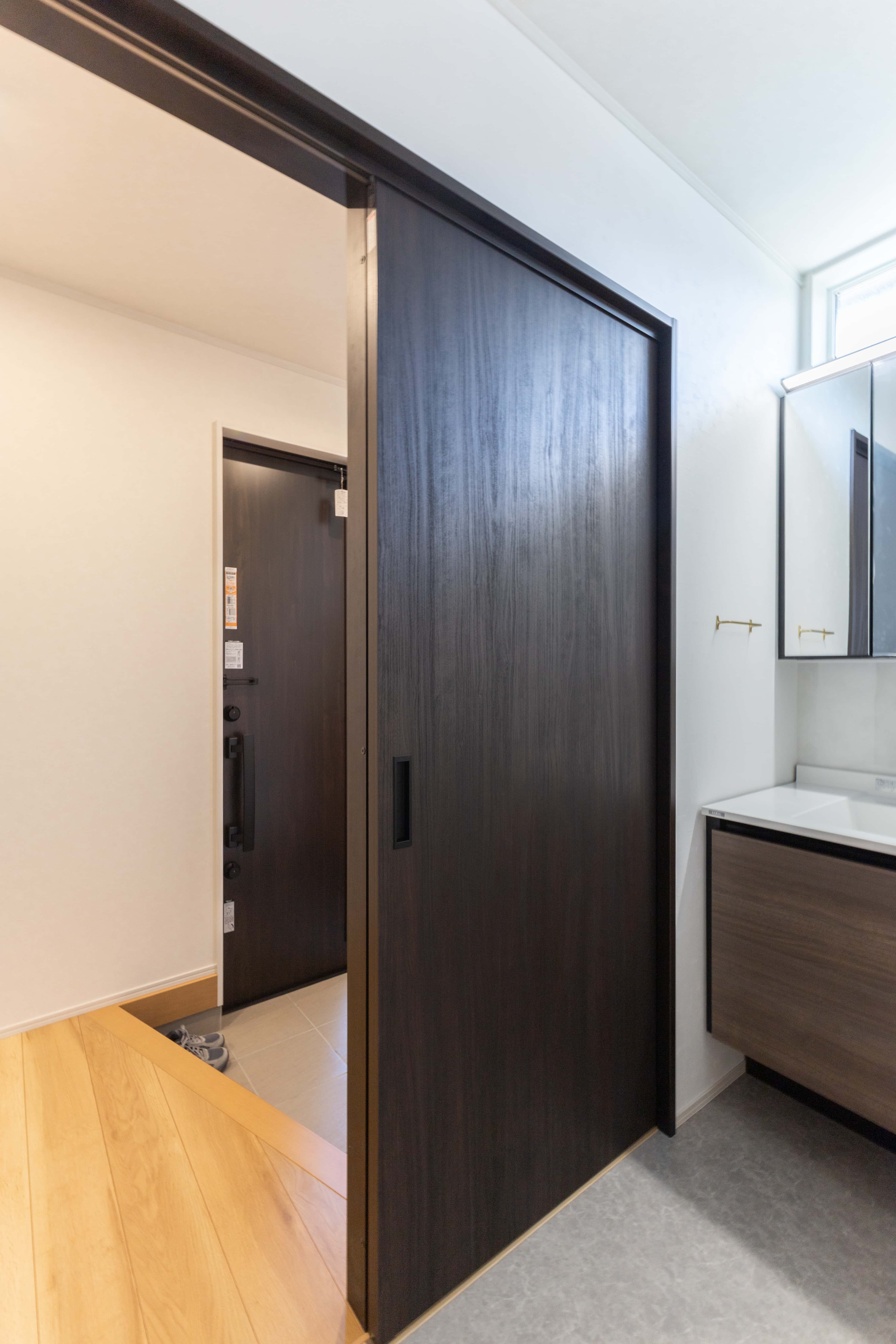 玄関すぐの位置に洗面台を設け、帰宅後すぐに手洗いうがいができる動線に。家族みんなが自然と清潔習慣を身につけられる、衛生的で安心な間取りです。