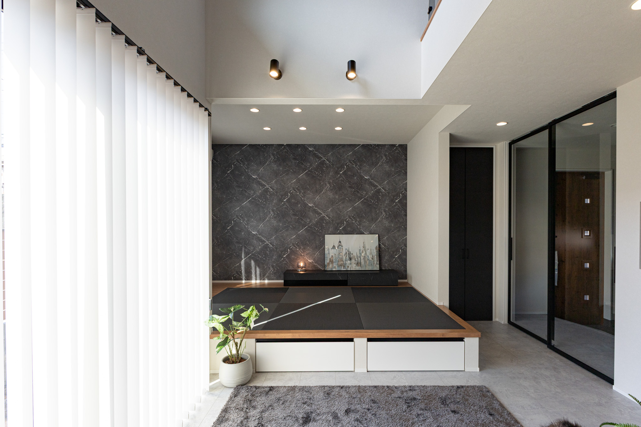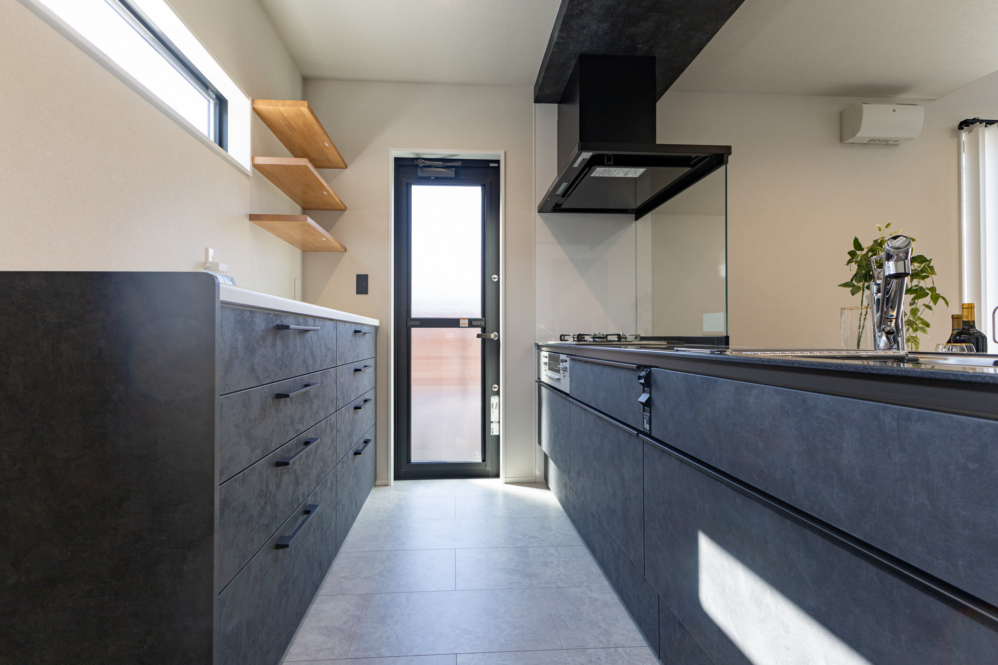 ベースの外壁に金属風デザインのブラックを採用し、洗練された空間に。