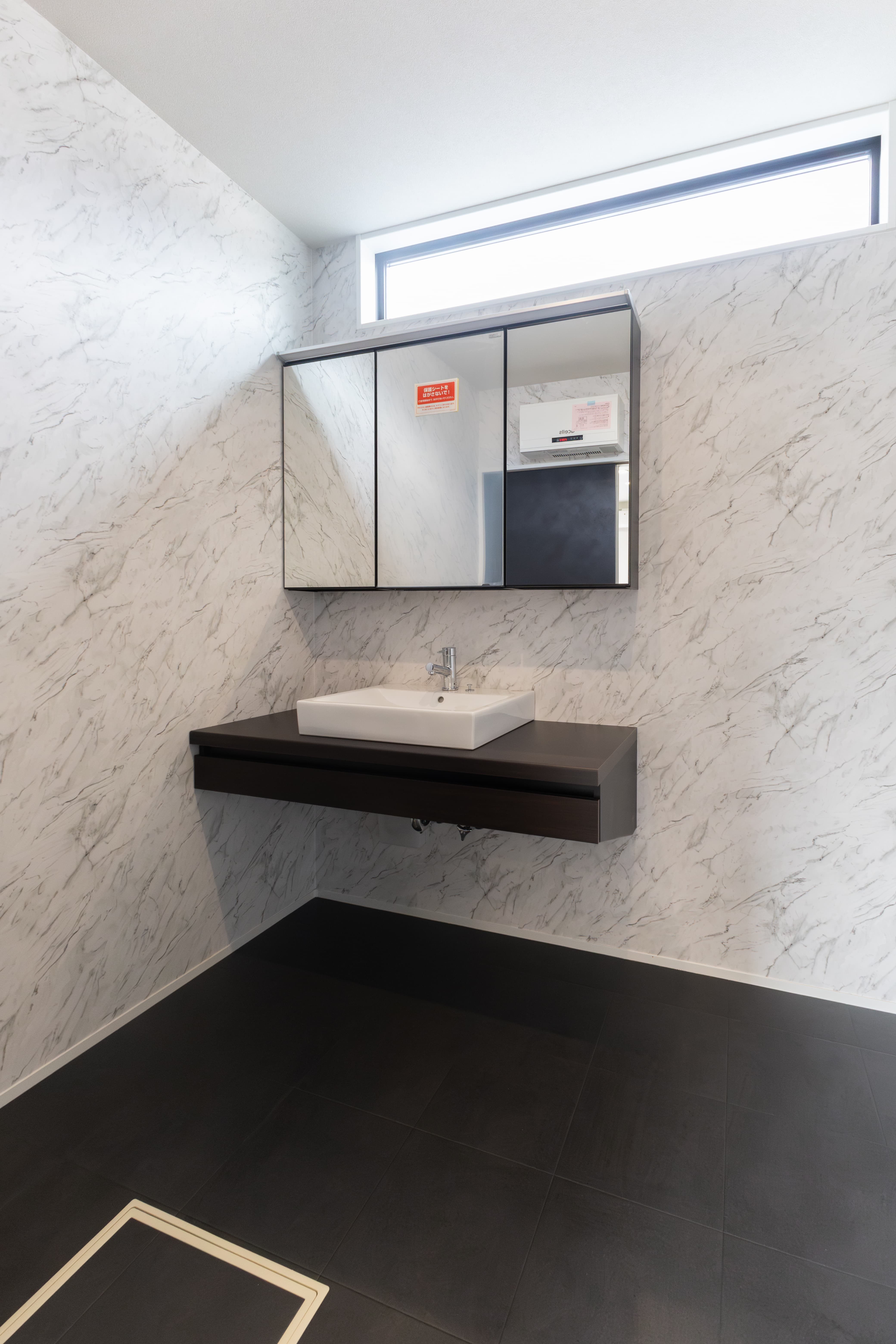 洗面所は約2.6帖のゆとりあるスペース。洗面台にはLIXIL「ルミシス」のベッセルタイプを採用し、上質なデザインに仕上げました。