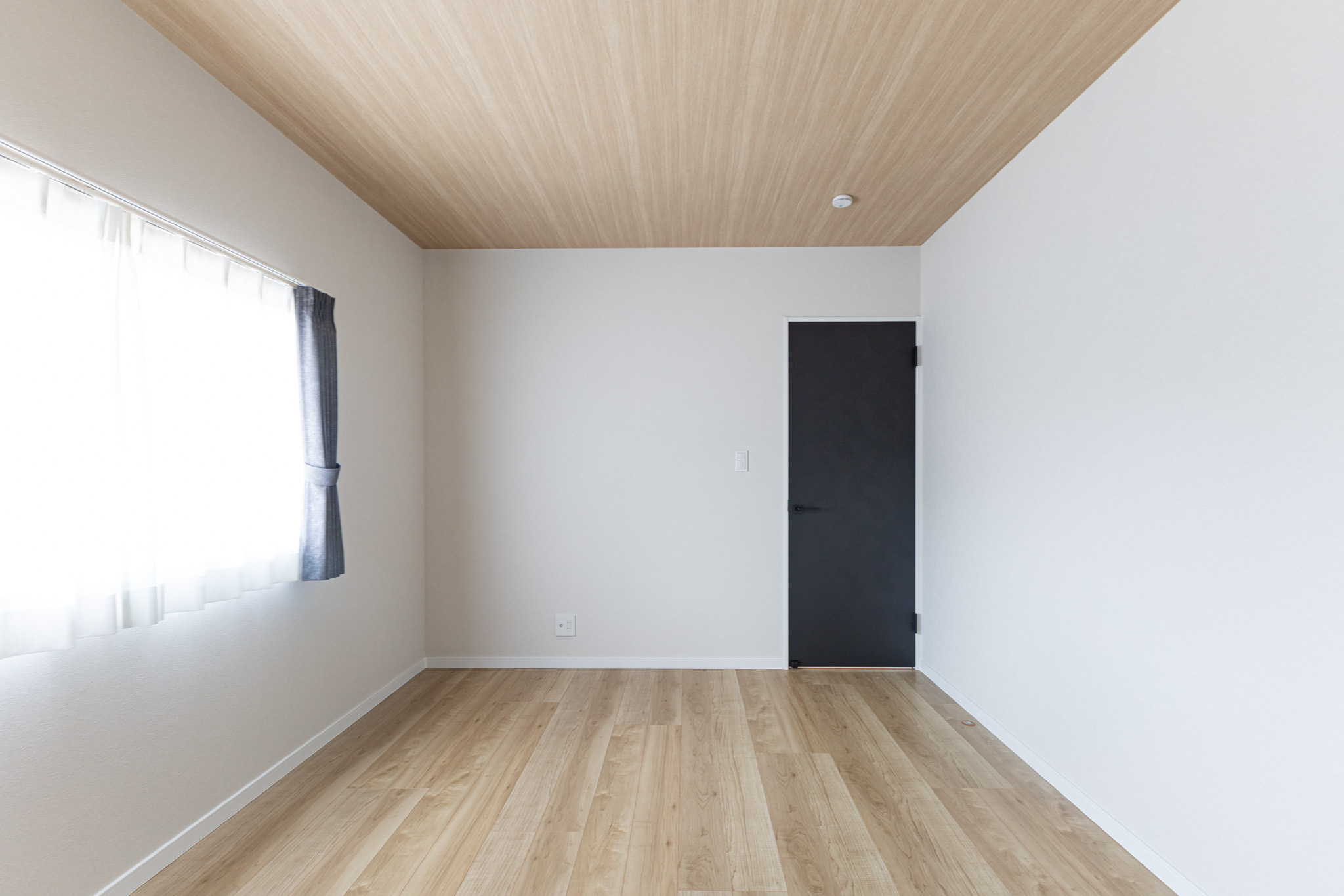 約7.2帖の主寝室。床と天井は明るい木目調で、温かみのある空間に仕上げました。