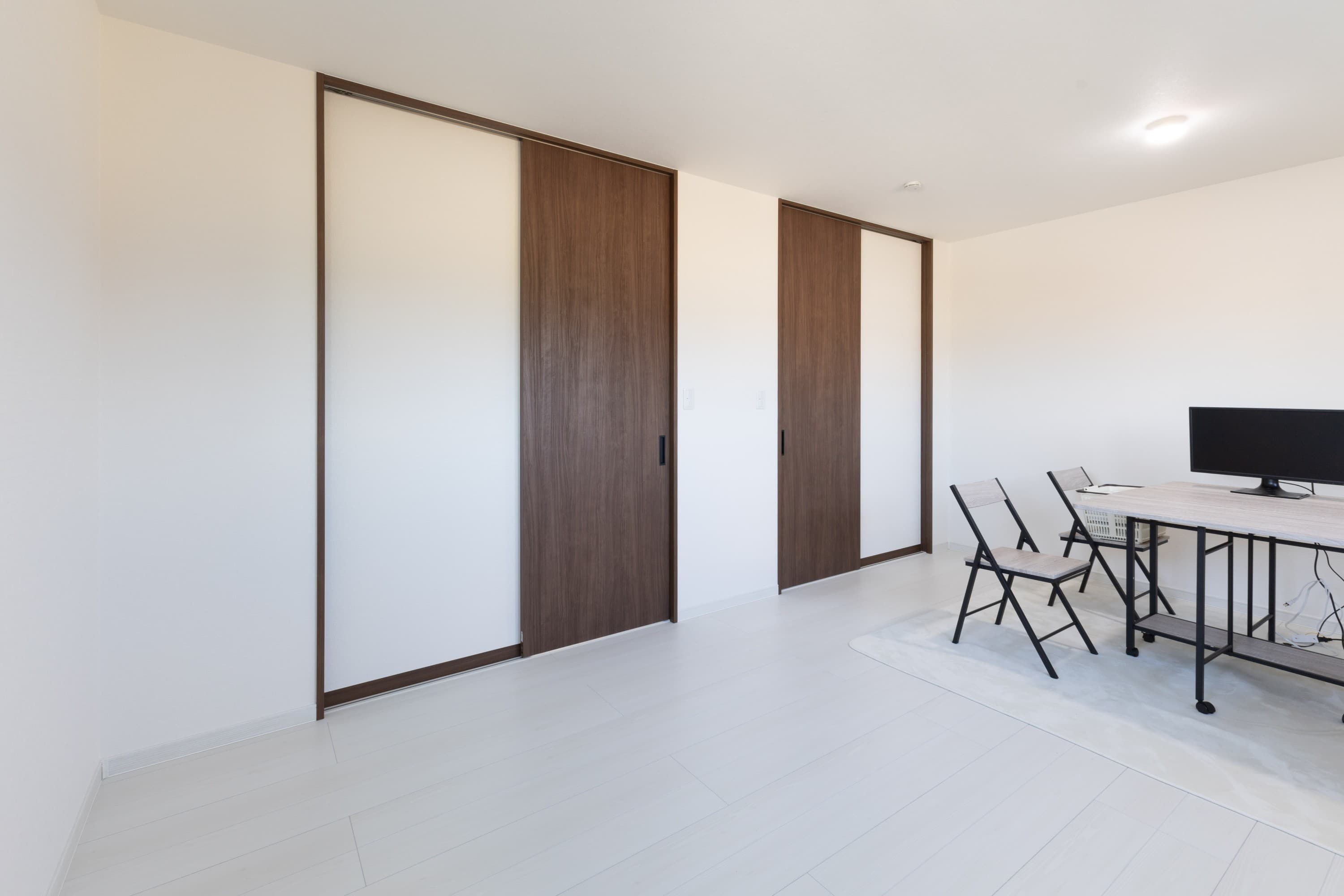 リビングに隣接する10.58帖の洋室。現在は広い一室として使い、将来的には間仕切りできるよう計画しました。リビングとつながる配置で、キッズスペースとしても活用できます。