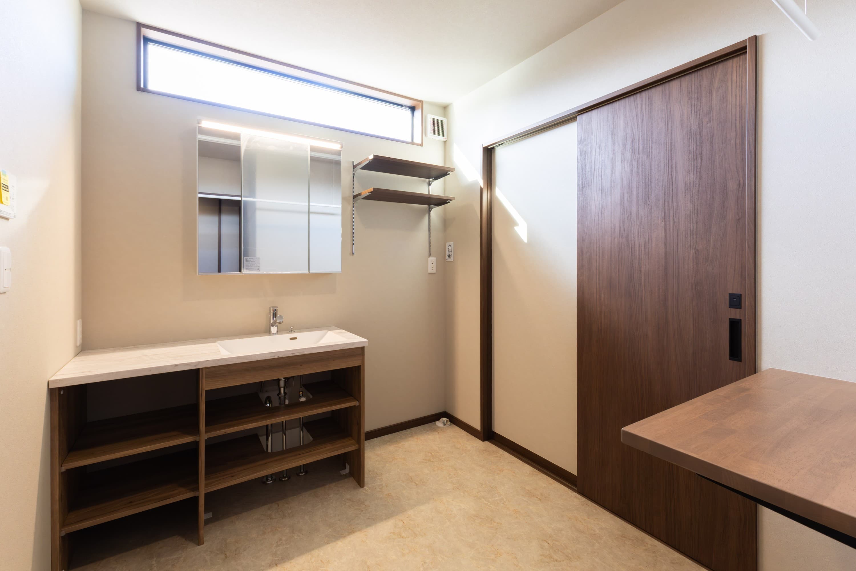 洗面ランドリー室。洗面台は「アイカ工業/スマートサニタリー」を採用。