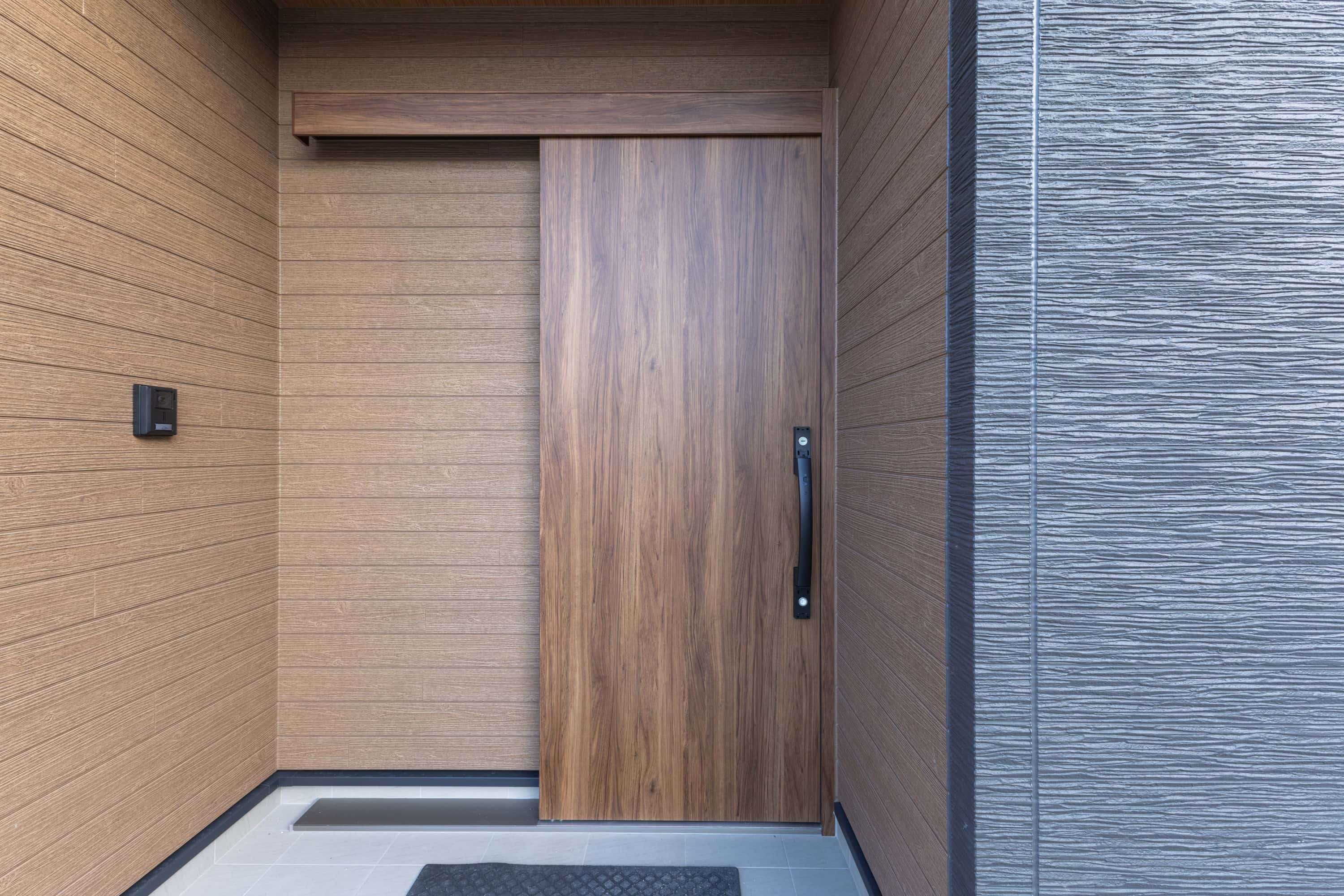 玄関ドアは「LIXIL/エルムーブ2/L15型/色:チーク」を採用しました。