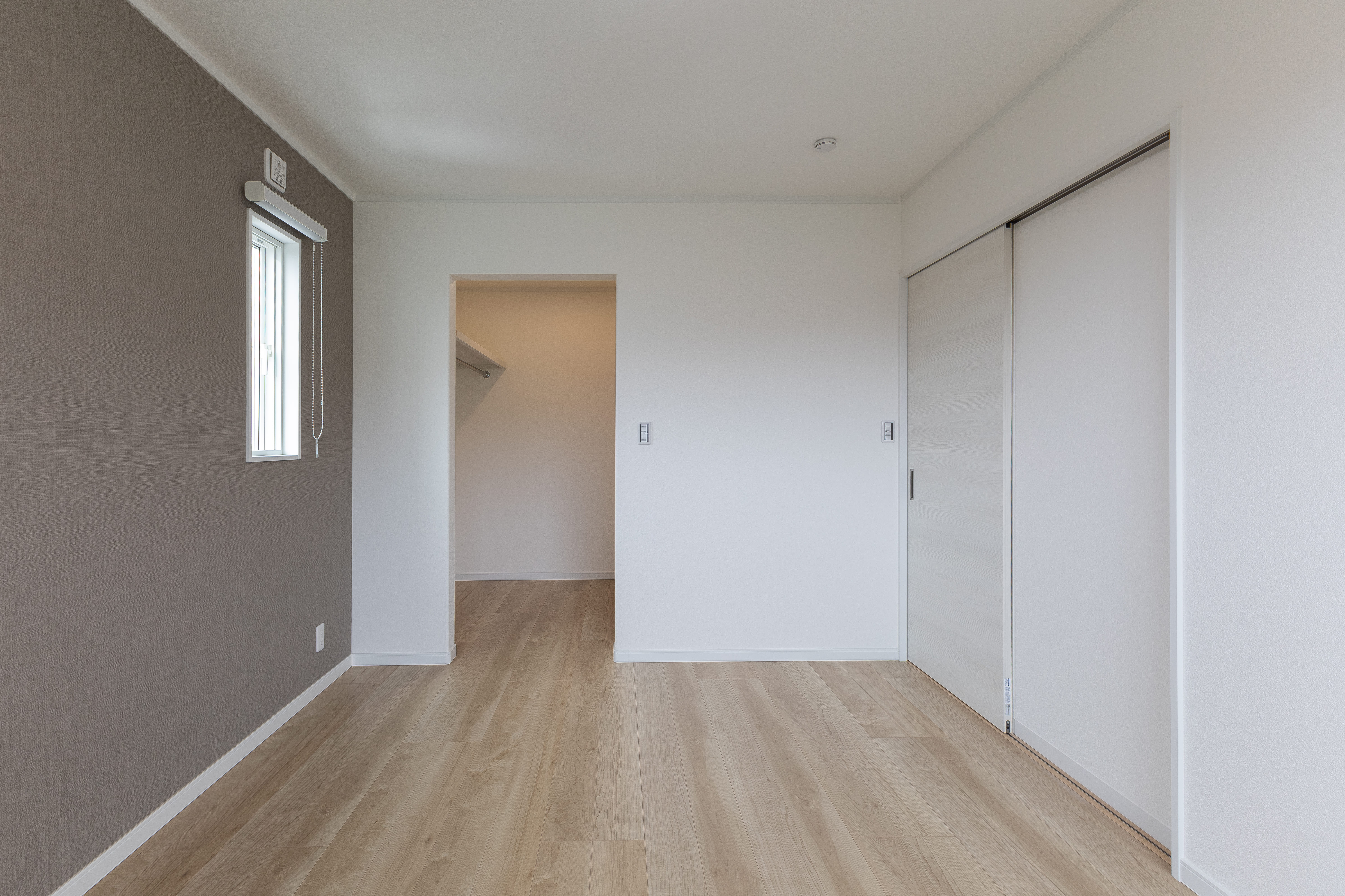 約5.8帖の洋室。収納も完備。アクセントクロスで個性を出しました。