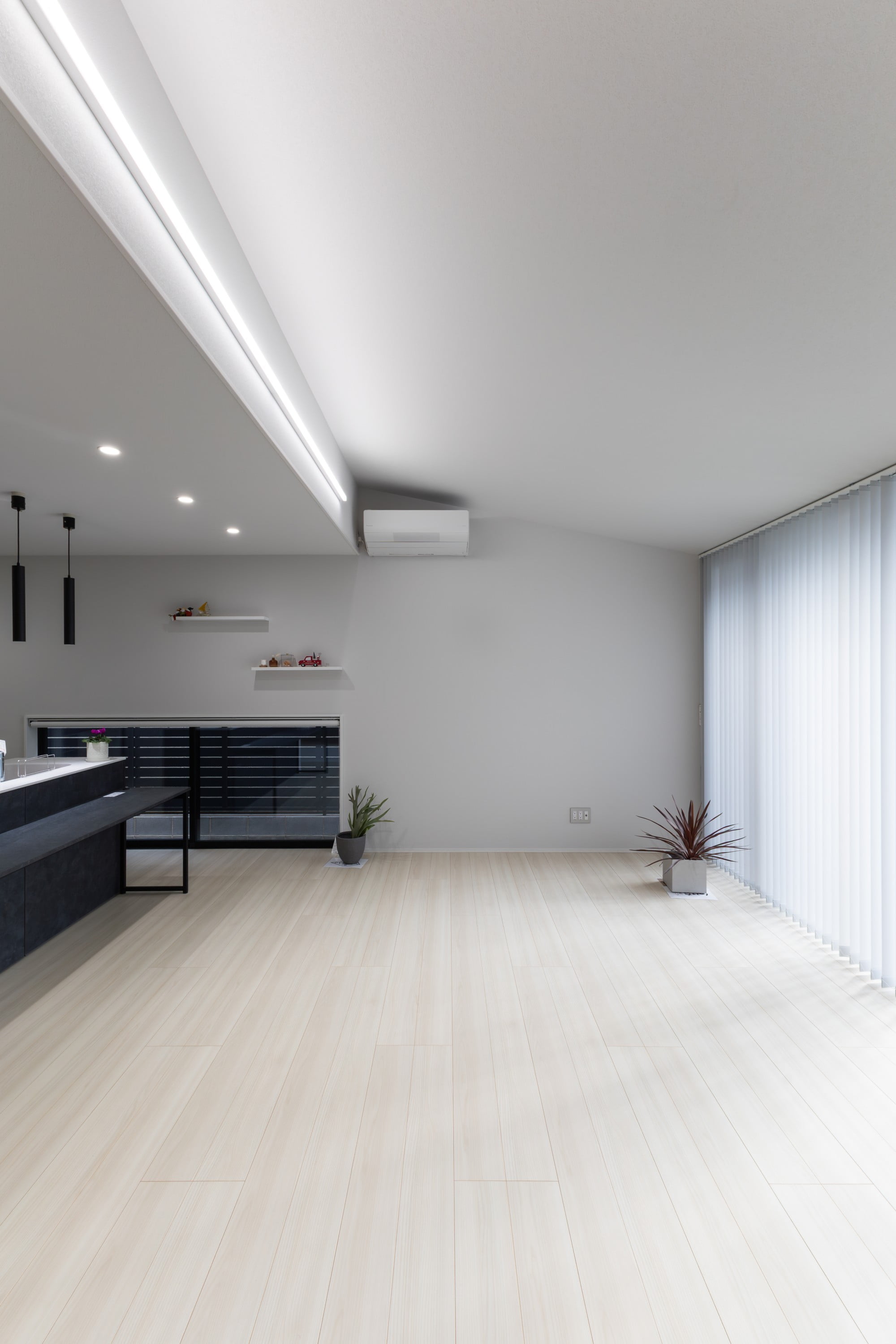 リビングには勾配天井を採用し、大きな窓と組み合わせることで、帖数以上の開放感を演出しています。