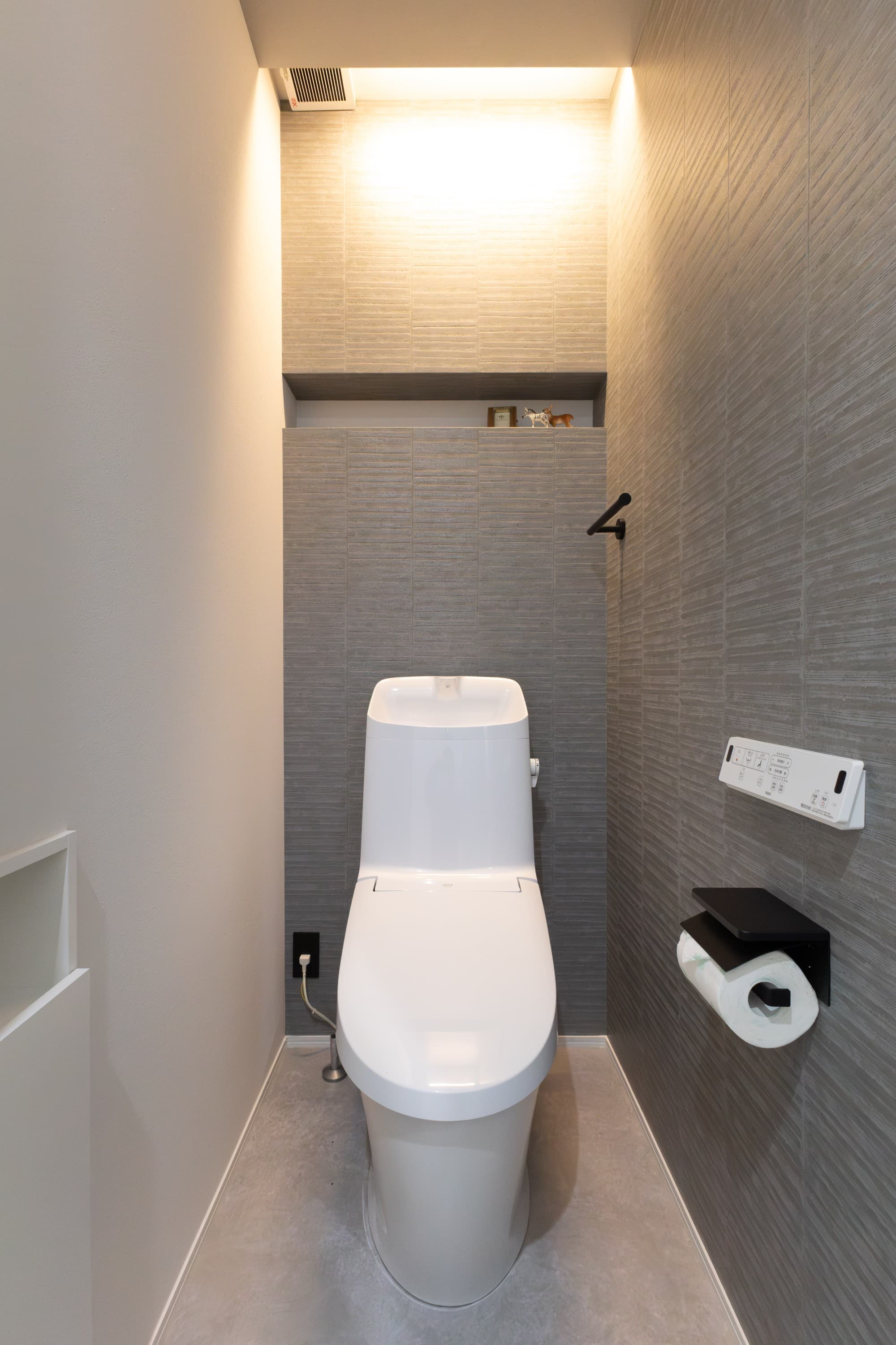 トイレは「LIXIL ベーシアシャワートイレ」を採用。間接照明を取り入れることで、おしゃれで心地よい空間に仕上げました。
