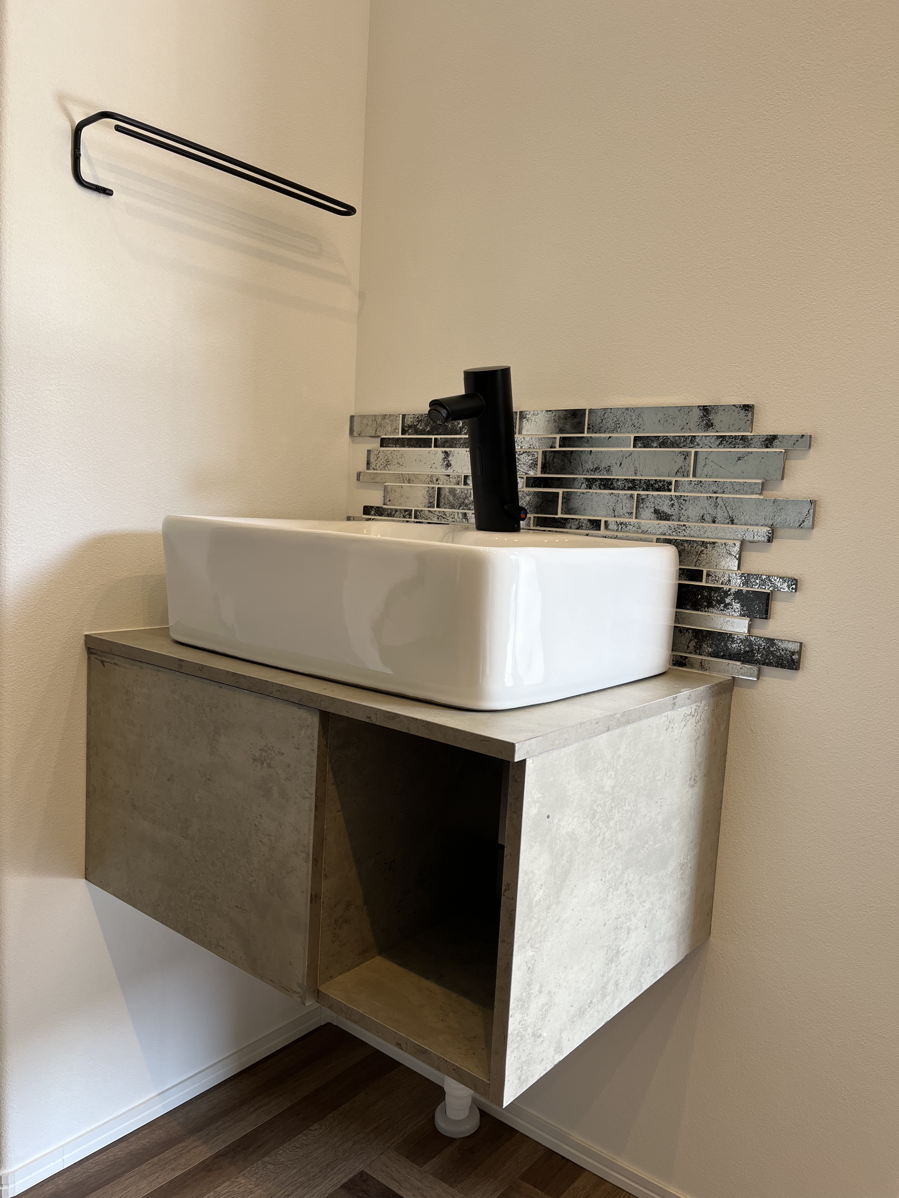 洗面ボウル:お施主様支給品 タイル:クランブルガラス DTR-R/CPG-1〈LIXIL〉
