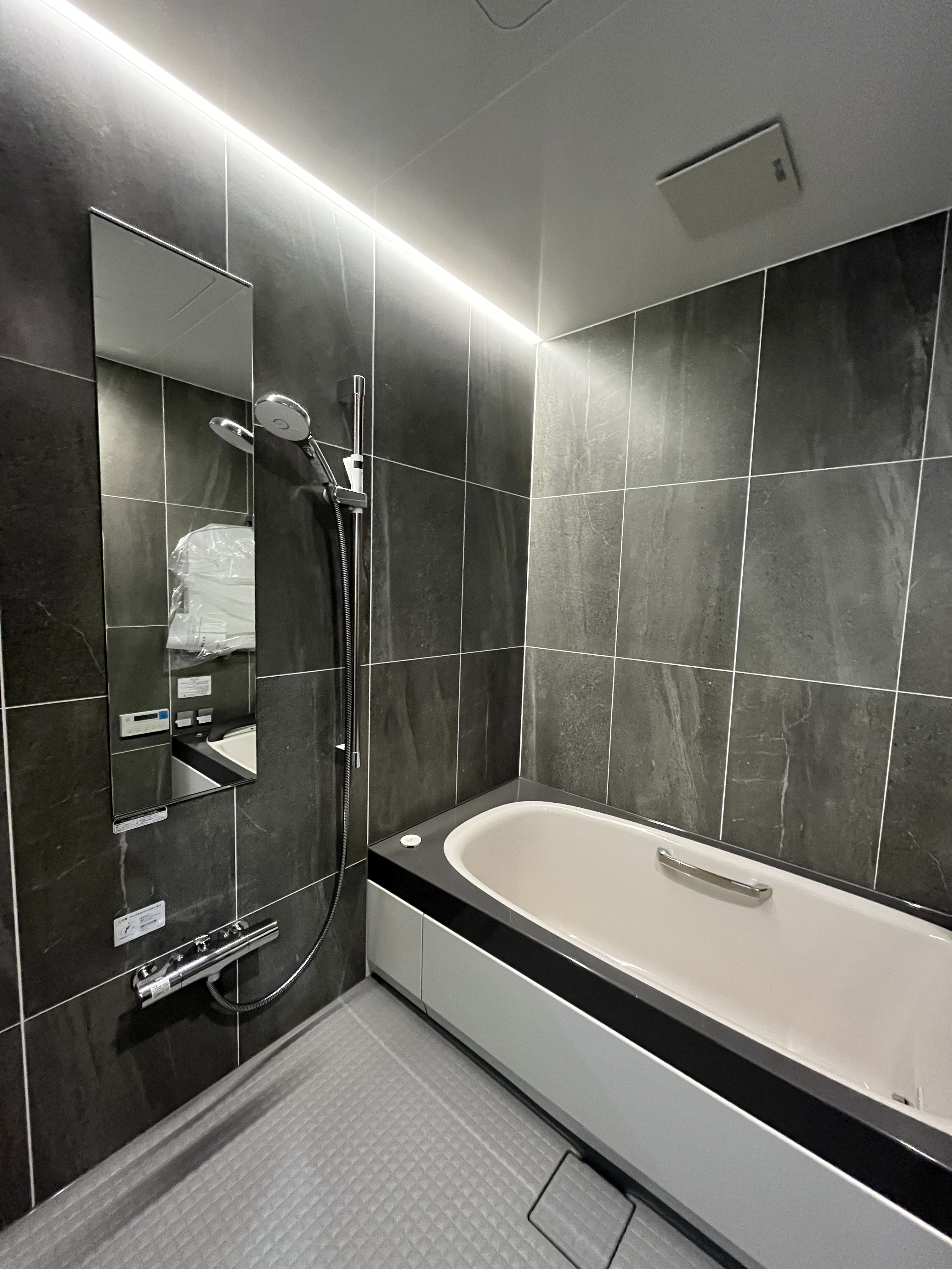 ユニットバス 浴室:システムバスルーム スパージュ BXタイプ 〈LIXIL〉 壁パネル:マット ロックストーングレー 浴槽:グランザ ツートーングレー