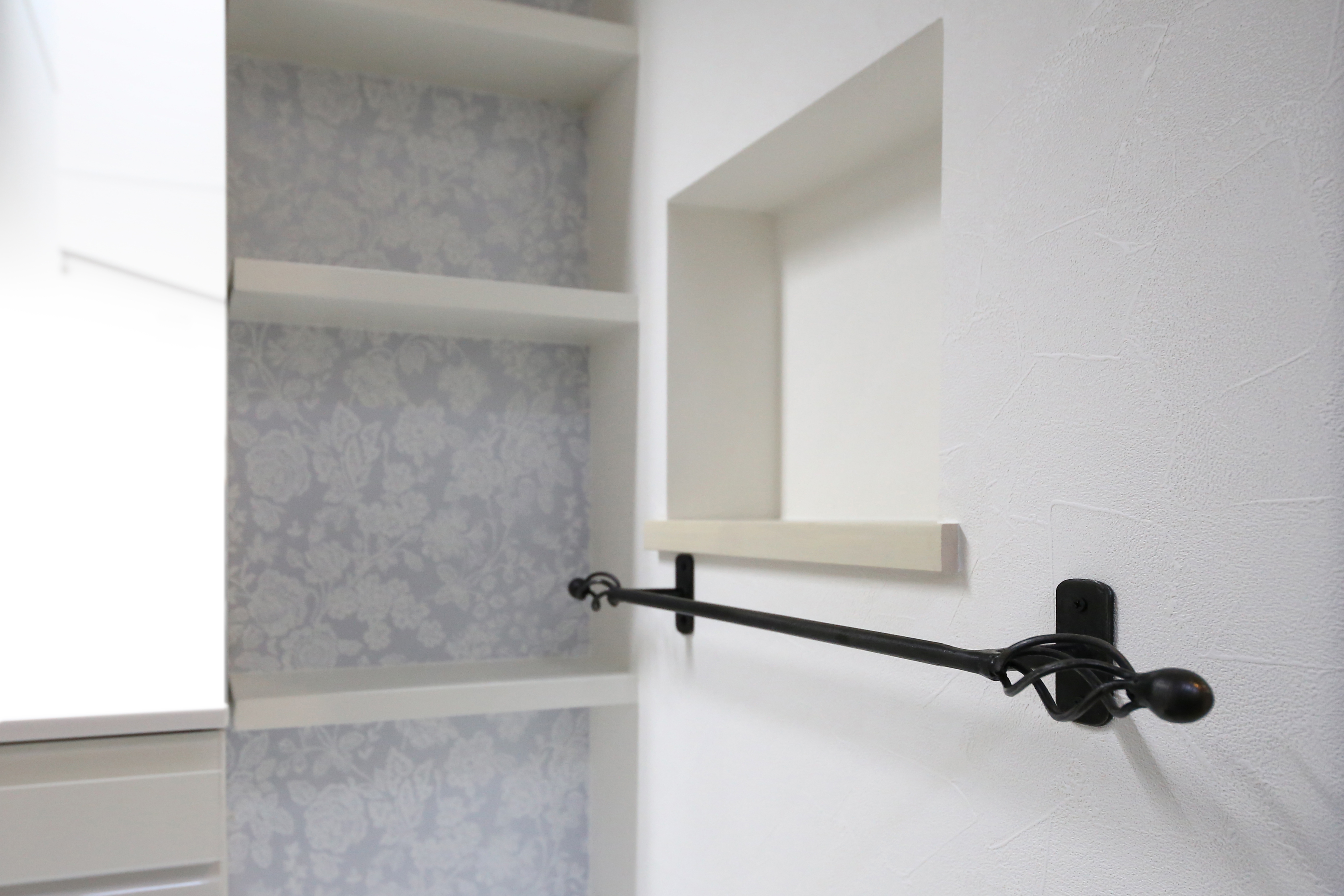 洗面横のニッチは実用的で便利です。