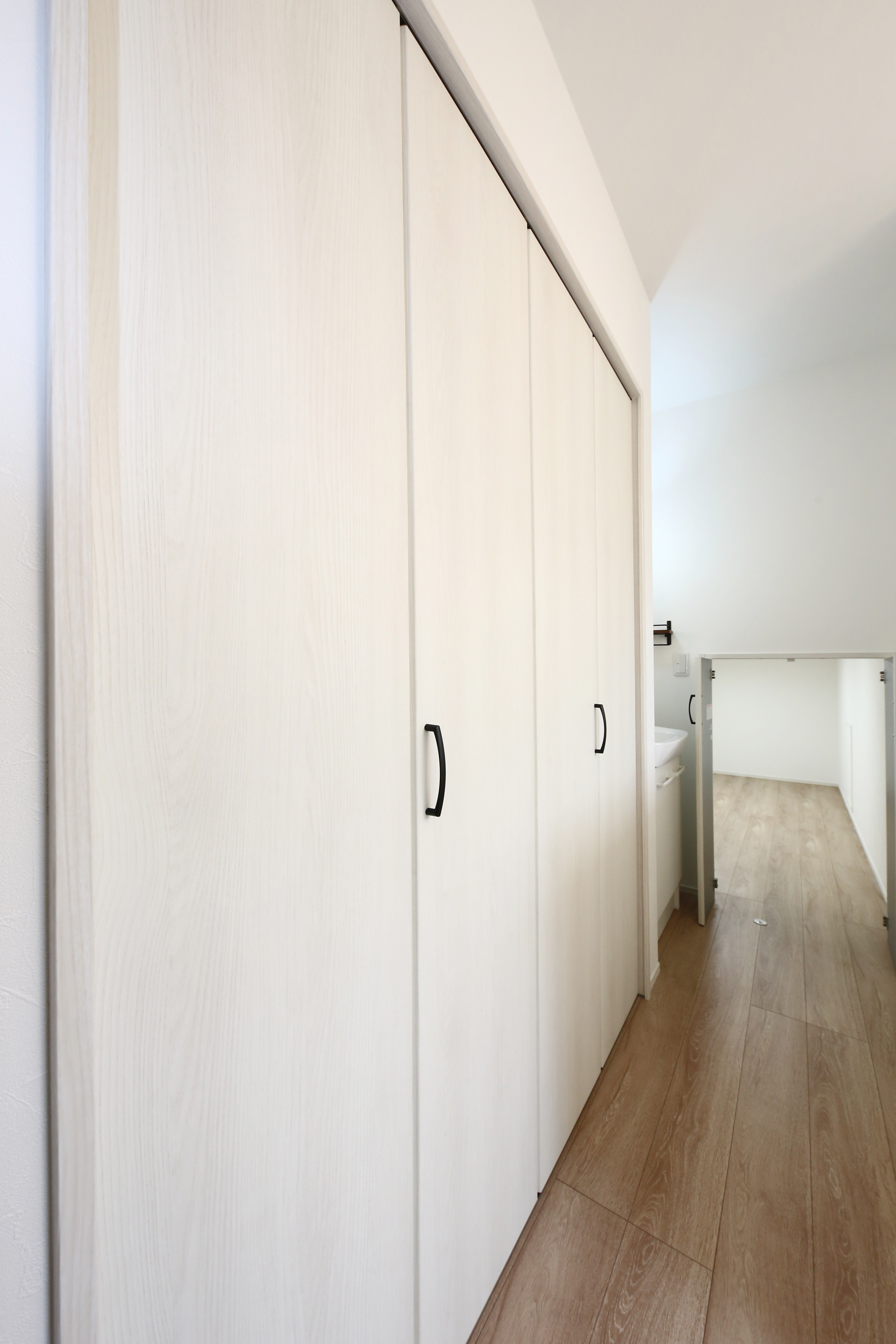 2階の廊下に収納スペースを作り、無駄な空間を無くしました。