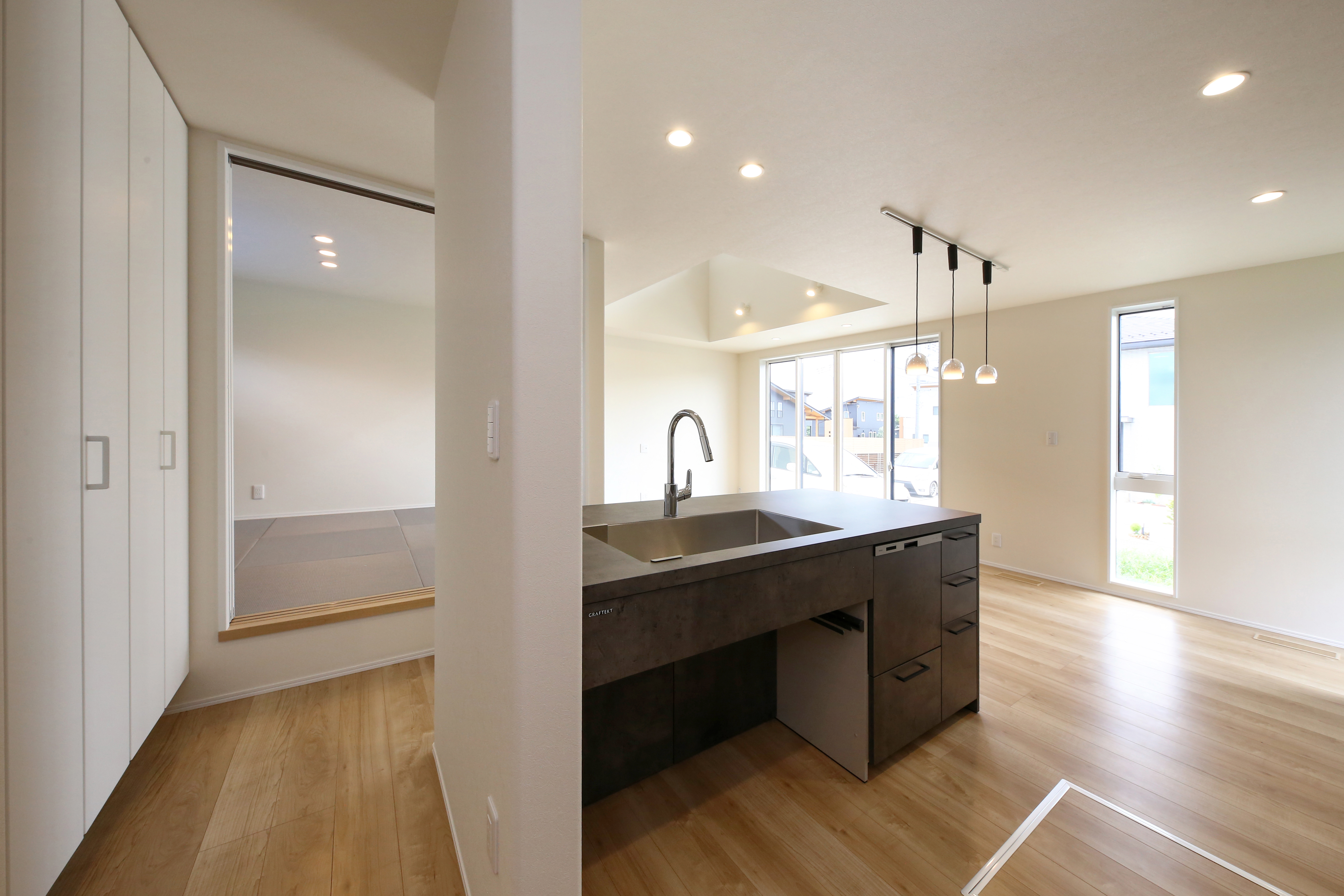 山梨県 アイフルホーム甲府店 お店の詳細 見学のご予約はこちら 055-269-7855 展示場 イベント・キャンペーン 建築事例 スタッフ紹介 交通アクセス 法人案内 建築事例 家族の笑顔が集う吹抜けリビングのある住まい 山梨県 明るい吹抜け。 多目的なファミリースペース。 アイランド型のキッチンで動きやすさ抜群。 キッチンの雰囲気に合わせた照明。 居室内にWIC。 便利なランドリースペース。2階にあるので小窓からの視線も気になりません。 ただいま手洗いができる帰宅動線。 広い玄関収納で住まいを清潔に保ちます。 家の高所に窓を設置し、採光性も景色も◎ 2階ホールから…スキップフロアから…どこでも家族の声が聞こえる安心住まい 吹抜けと大きな窓で開放感のある明るいリビングを演出します。1階には家族の空間を、2階に居室や水廻りを纏めることで1階の広さを大きく確保することが出来ます。 建築事例詳細 階数 2階建て 玄関位置 東玄関 外観デザイン ナチュラルモダン 建物の特徴 収納充実 家事効率 家族のふれあい 充実の設備・仕様 オール電化 通風・採光 高気密・高断熱 延床面積 32.62坪 敷地面積 - 加盟法人 株式会社片桐建設 連絡先 055-269-7855 実例所在地 山梨県 展示場詳細を見る こちらの事例は、アイフルホームグループのどの加盟店でも建築可能です。お気軽にお問い合わせください。 見学のご予約 お電話でのお問い合わせ 055-269-7855