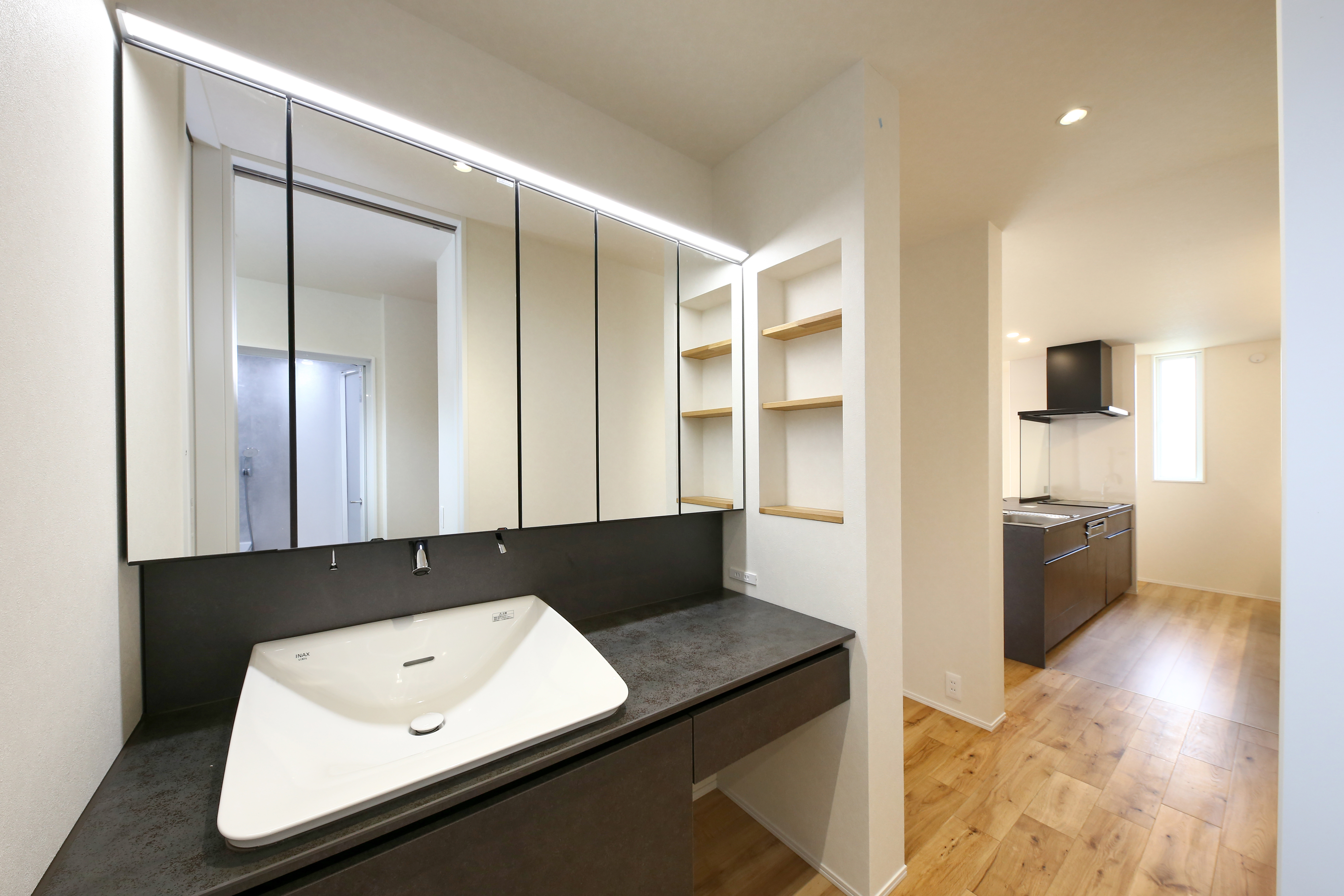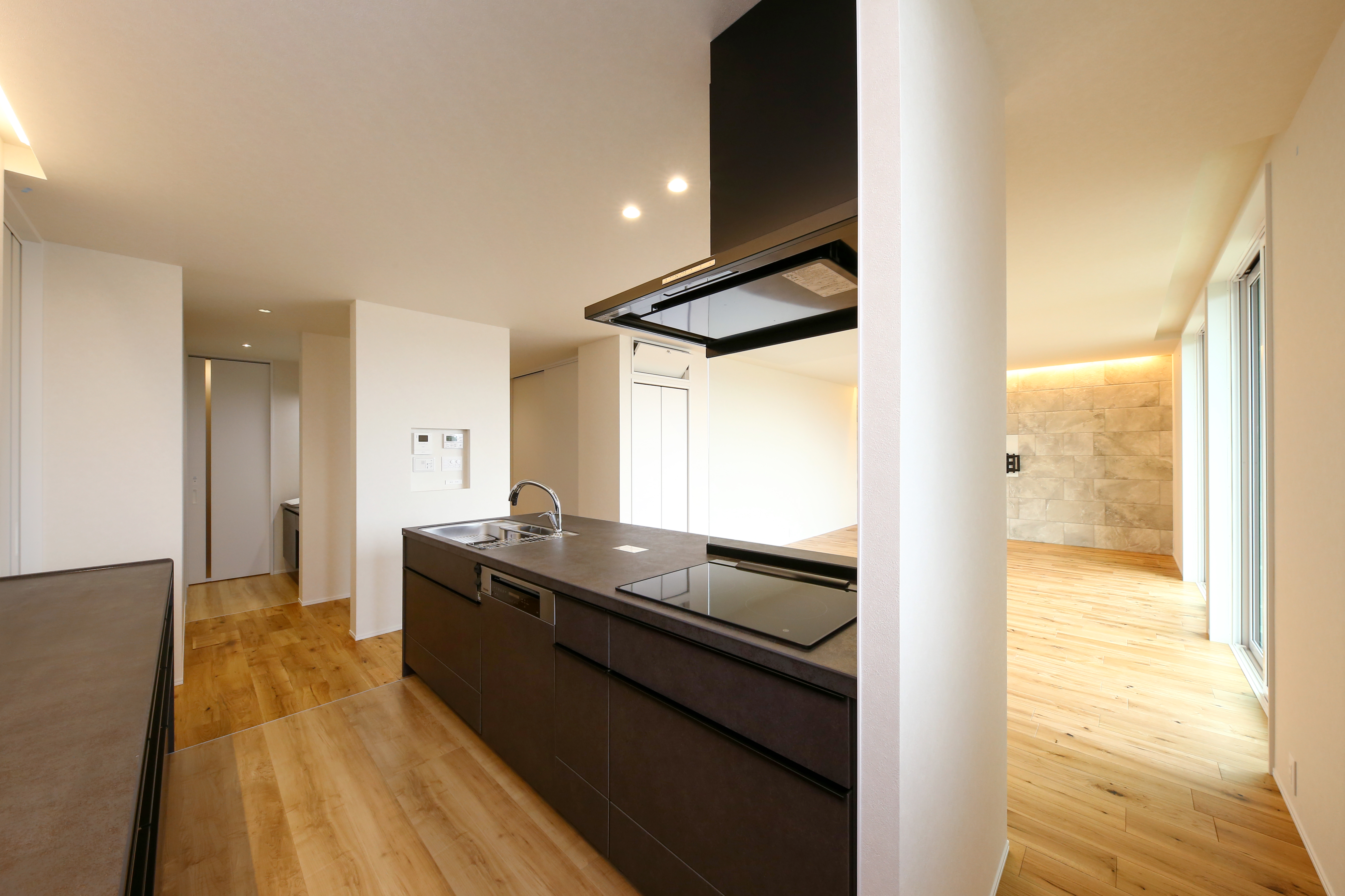 愛知県 アイフルホーム岡崎南店 お店の詳細 見学のご予約はこちら 0564-58-4200 展示場 イベント・キャンペーン 建築事例 スタッフ紹介 交通アクセス 法人案内 建築事例 最強家事ラク回遊動線の30坪3LDK ナチュラルモダンな平屋 愛知県 回遊性の高いキッチンで作業効率UP。完全なアイランド型ではなく壁をつけているので床への油跳ねなども抑えられます。 折り上げ天井と間接照明で優しい光のリビングに。 涼暖のエアコン隠しはそのまま収納場所になります。 キッチンから手の届く距離にスイッチニッチを設計すると移動の手間が省けます。 ランドリー→ファミリークロークの完璧な洗濯動線。 シンプルながら落ち着いた印象の洗面台。 廊下に大きな収納場所を作りスペースパフォーマンスUP。 隠せるシューズクロークなので来客時も安心。 玄関の間接照明で家に入った瞬間好印象。 無垢床&次世代型全館空調『涼暖』で1年中裸足で過ごせる快適住まい 洗面→脱衣室→ファミリークローク→キッチンという回遊動線の中に完璧な帰宅動線と洗濯動線が設計されており、毎日のロスタイムを10分短縮できます。この完璧な動線で時間の無駄だけではなく住まいのスぺ―スの無駄を省くことができ、30坪の平屋で3LDKながら23帖の広いリビングを実現しました。 建築事例詳細 階数 平屋 玄関位置 東玄関 外観デザイン ナチュラルモダン 建物の特徴 収納充実 家事効率 オール電化 通風・採光 高気密・高断熱 延床面積 99.25㎡ 敷地面積 102.63㎡ 加盟法人 株式会社片桐建設 連絡先 0564-58-4200 実例所在地 愛知県 展示場詳細を見る こちらの事例は、アイフルホームグループのどの加盟店でも建築可能です。お気軽にお問い合わせください。 見学のご予約 お電話でのお問い合わせ 0564-58-4200