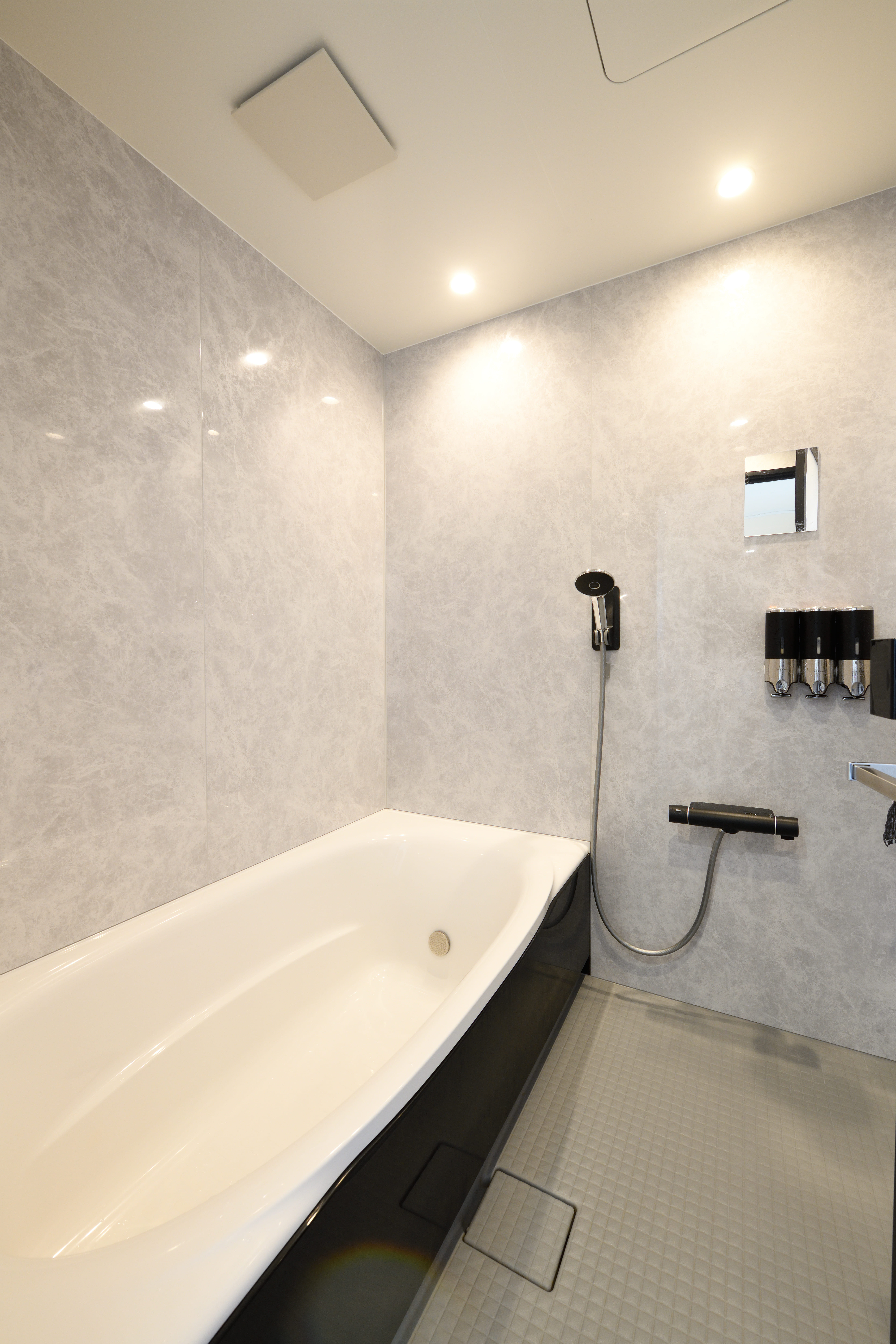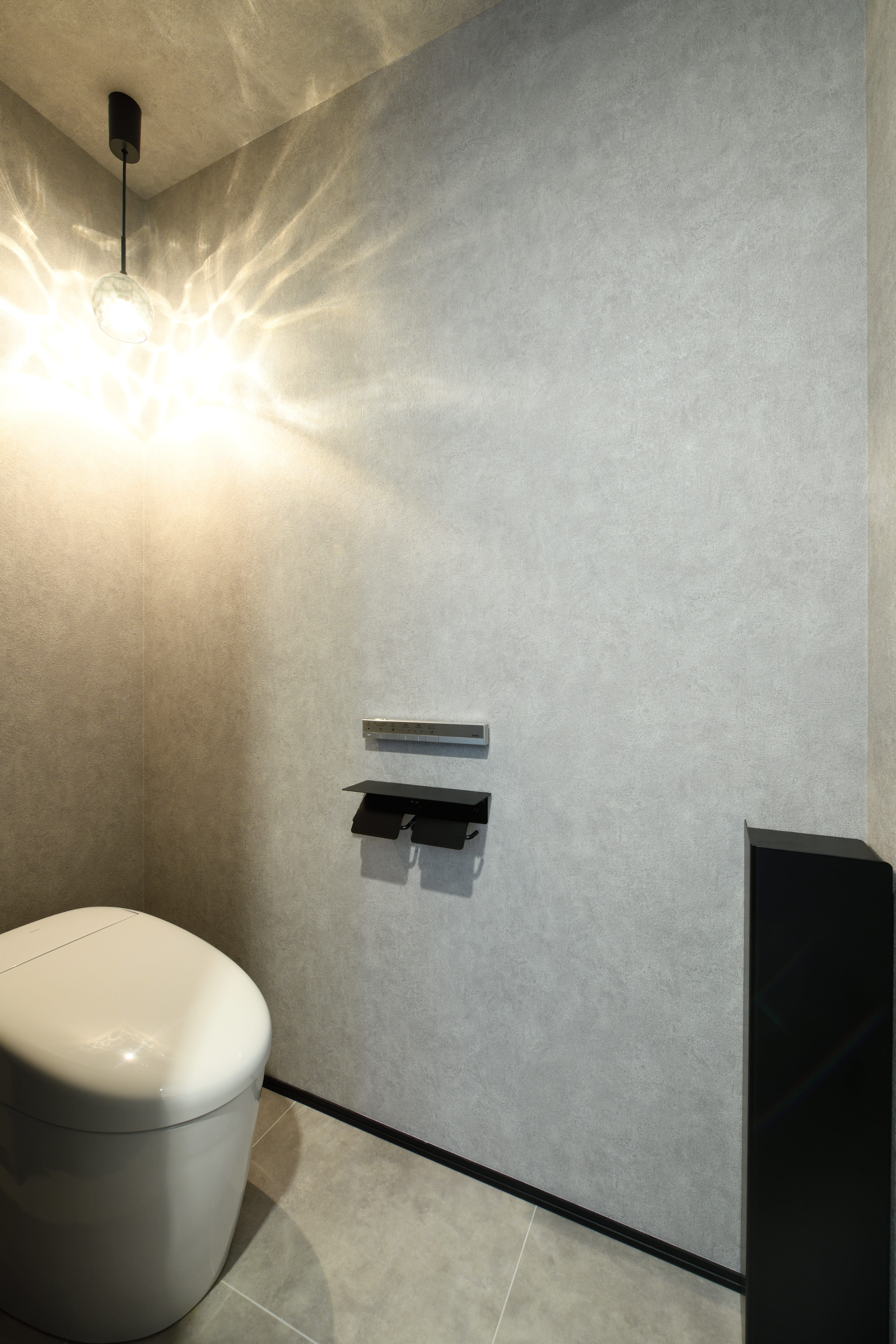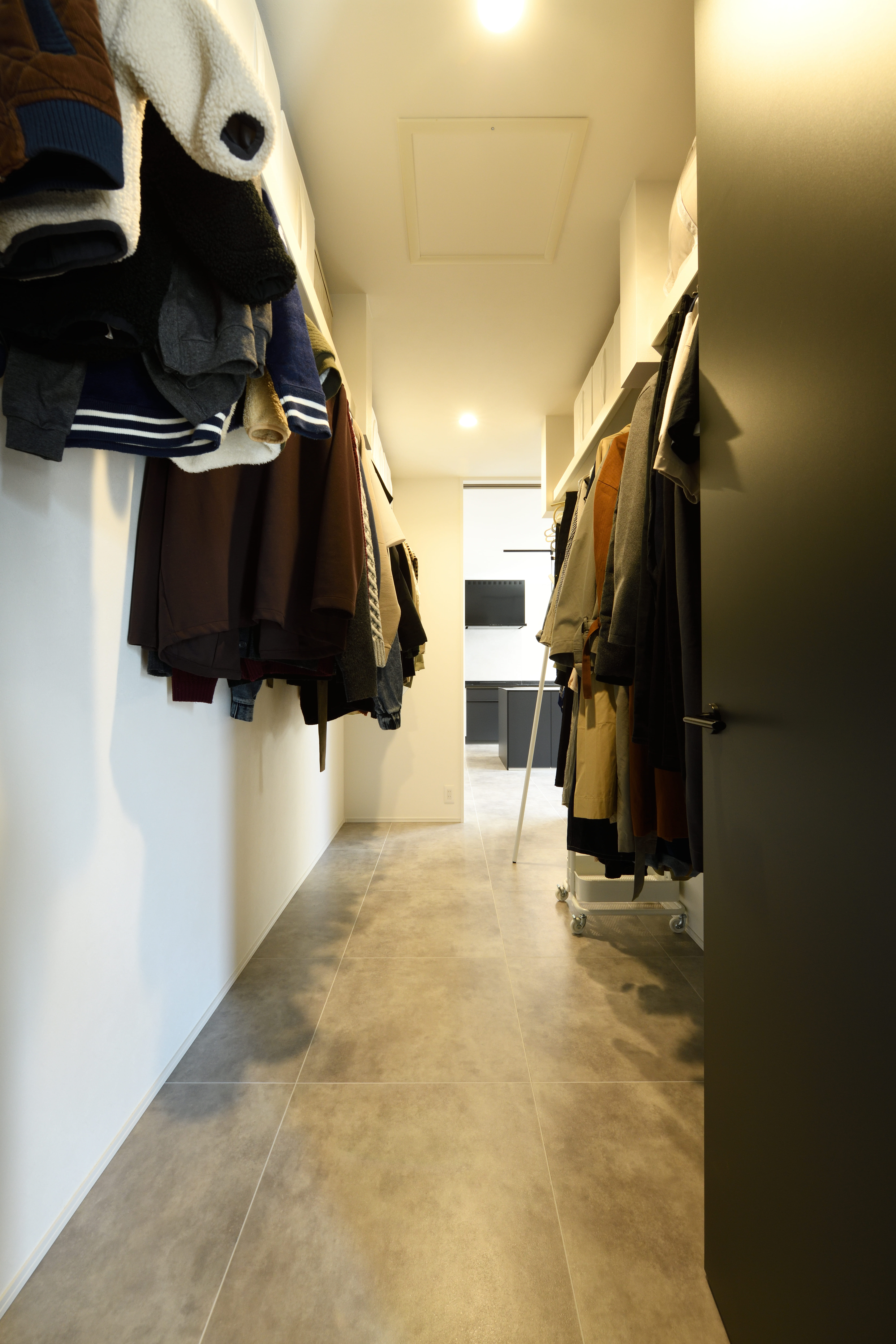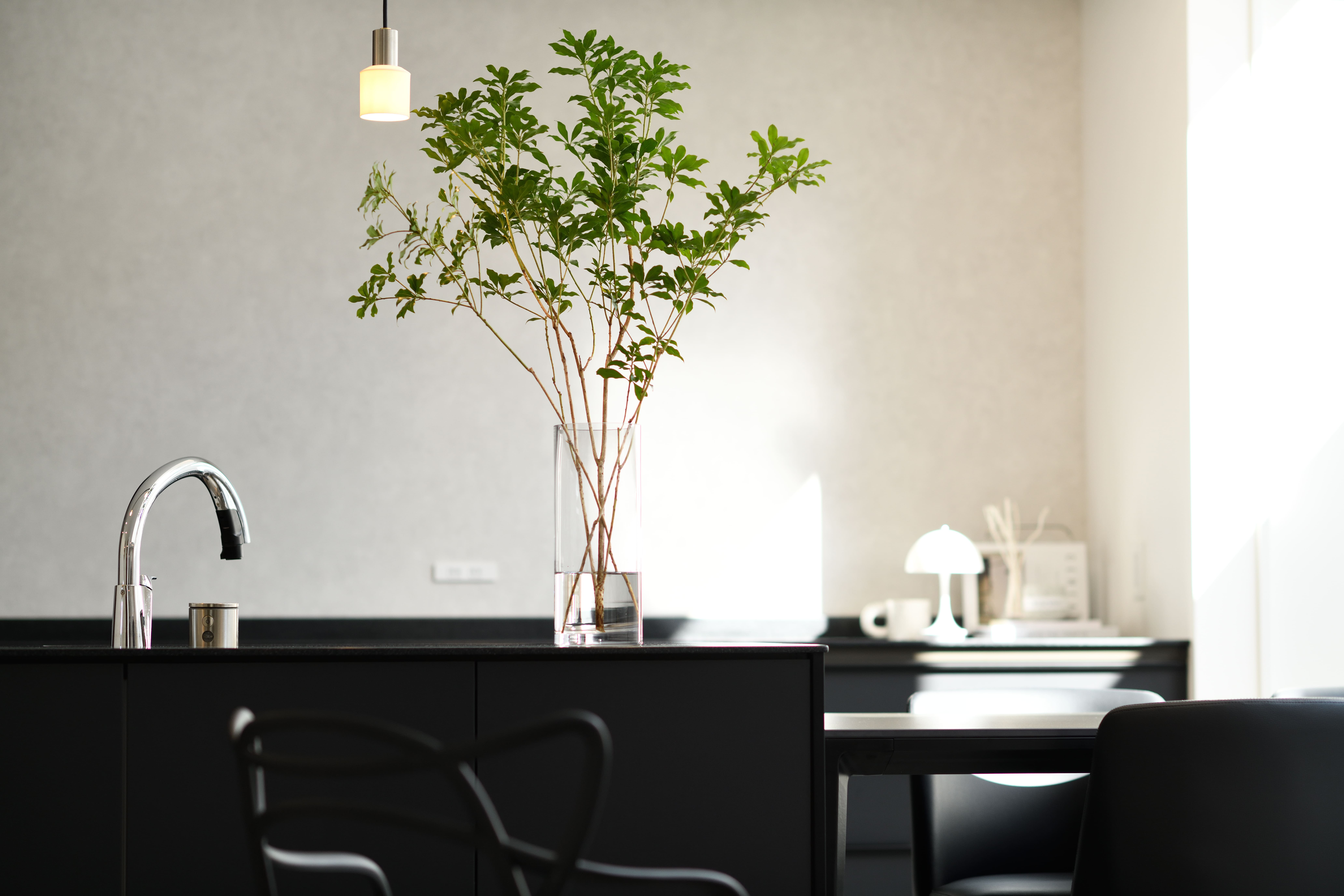 シンプルの中にスタイリッシュさを感じる外観。玄関を開けると、黒のハイドアとグレーのフロアタイルで高級感を演出。ガラスドアの向こう側に見えるおしゃれなキッチンはとてもハイセンスです。ドアをすべてハイドアにしてあるため、平屋で限られた空間でも狭さを一切感じません。リビングは勾配天井と大きな窓で常に明るく、上から差し込む陽もおしゃれを演出してくれます。玄関とリビングをつなぐファミリークローゼット、キッチンと横並びになったランドリールームなどママには嬉しい家事ラク動線も取り入れられ、常にキレイな状態を保てる工夫が施されています。
