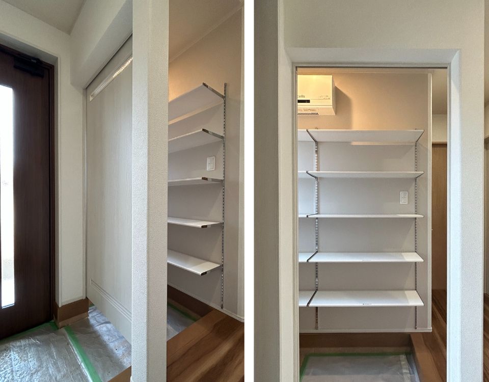 引き戸で仕切って目隠しできるシューズクローク