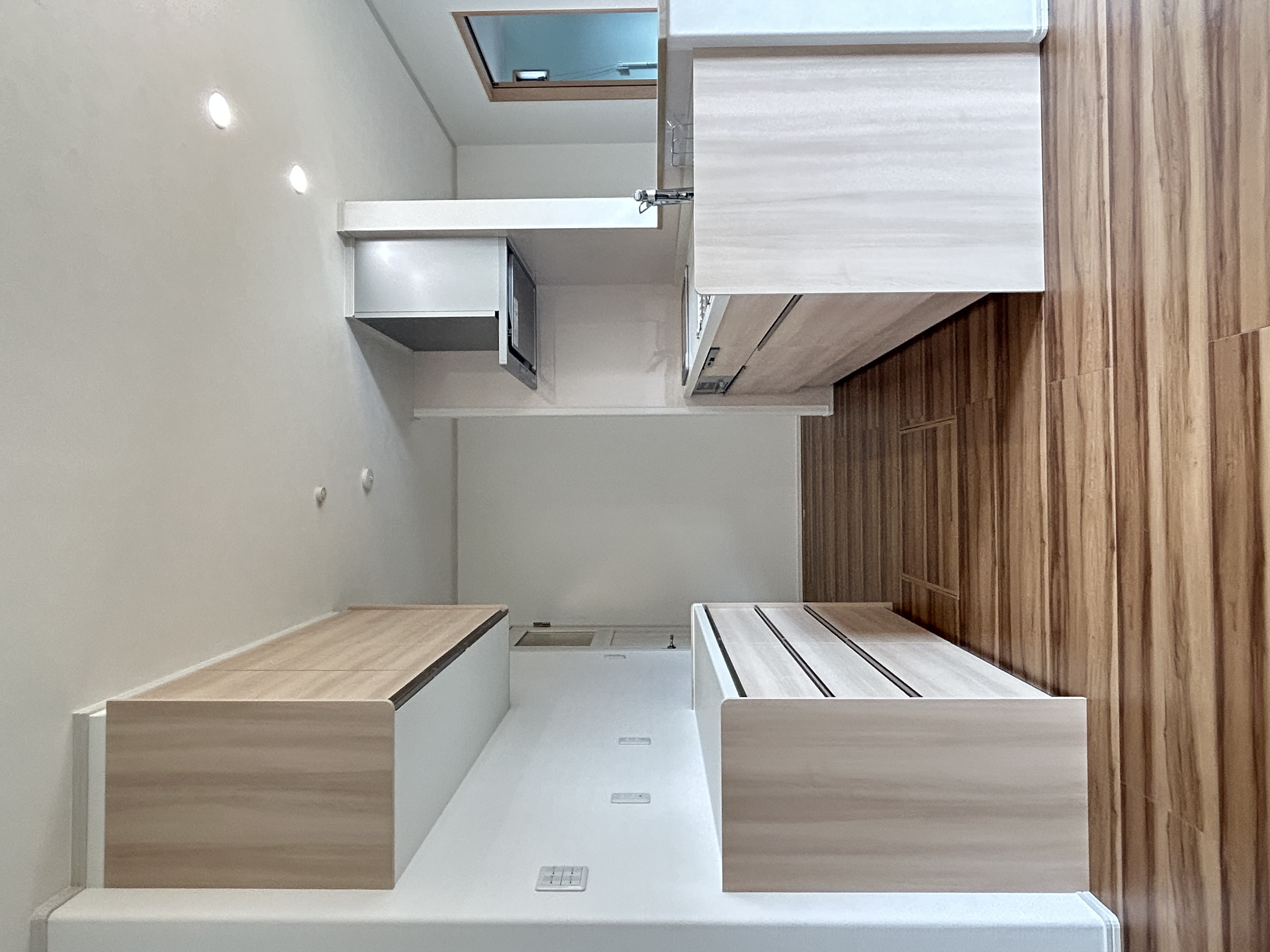 洗面脱衣室内に室内物干を設置してランドリールームの要素もプラス