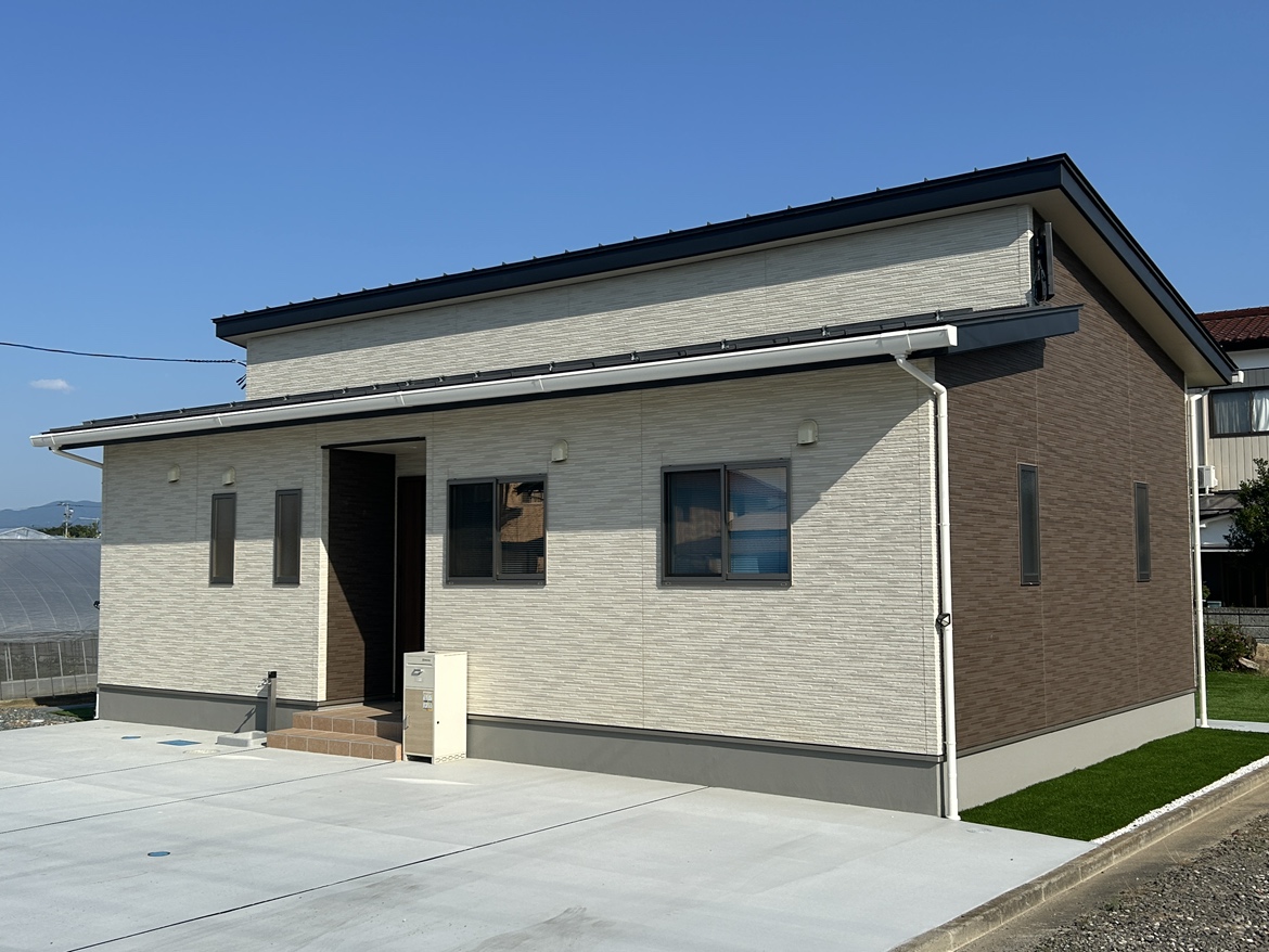 段違い屋根がアクセントの平屋 ナチュラルカラーで親しみやすい外観に