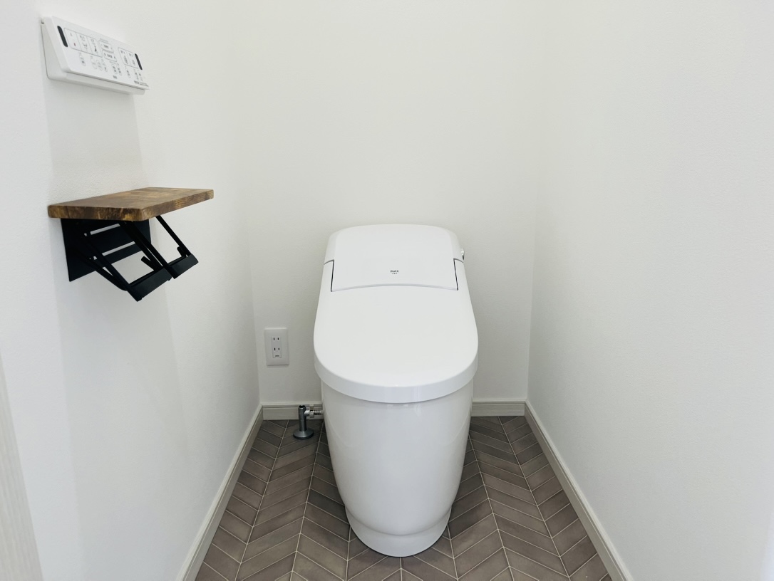 床にはヘリンボーン柄の床材を採用し、上品さと温もりをプラス。 毎日使う場所だからこそ、心地よさにこだわりました。