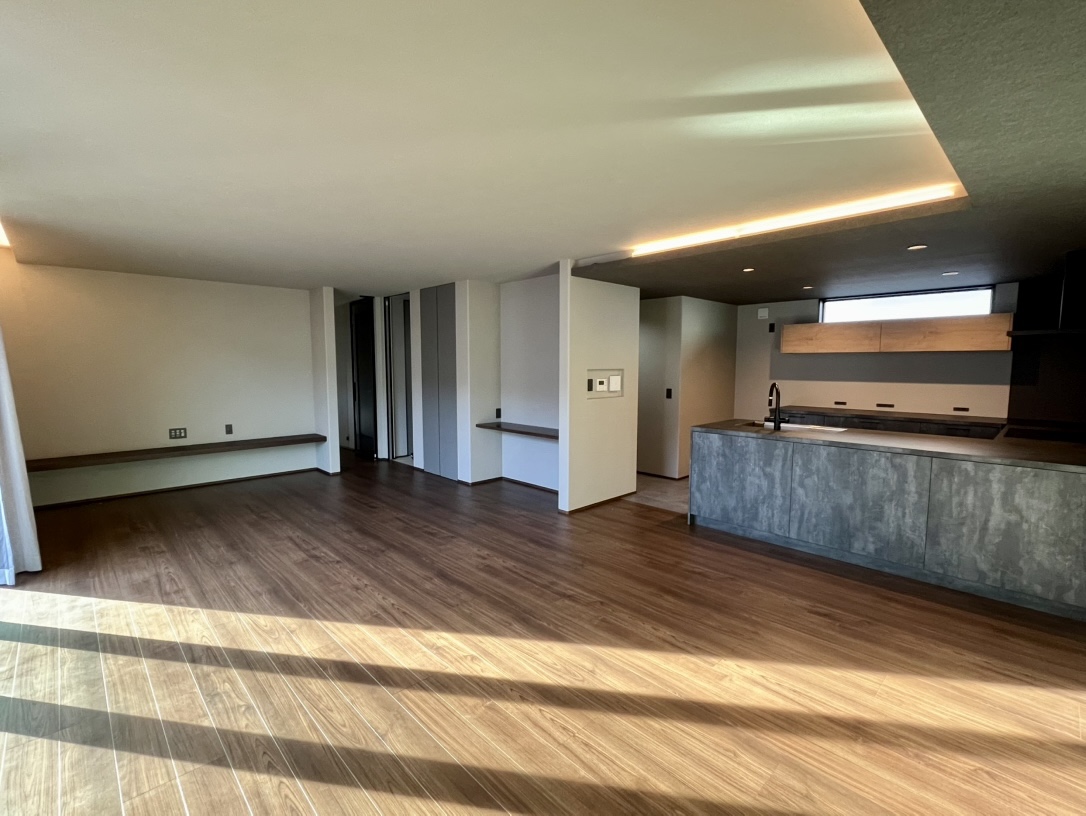 家族それぞれが心地よく過ごせる広々としたLDK。間接照明を採用し、ホテルのような落ち着いた明るさに。