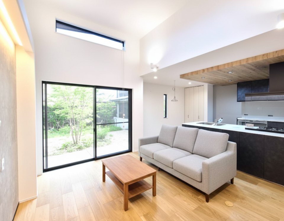 モダンな外観&天井高3.6mリビング