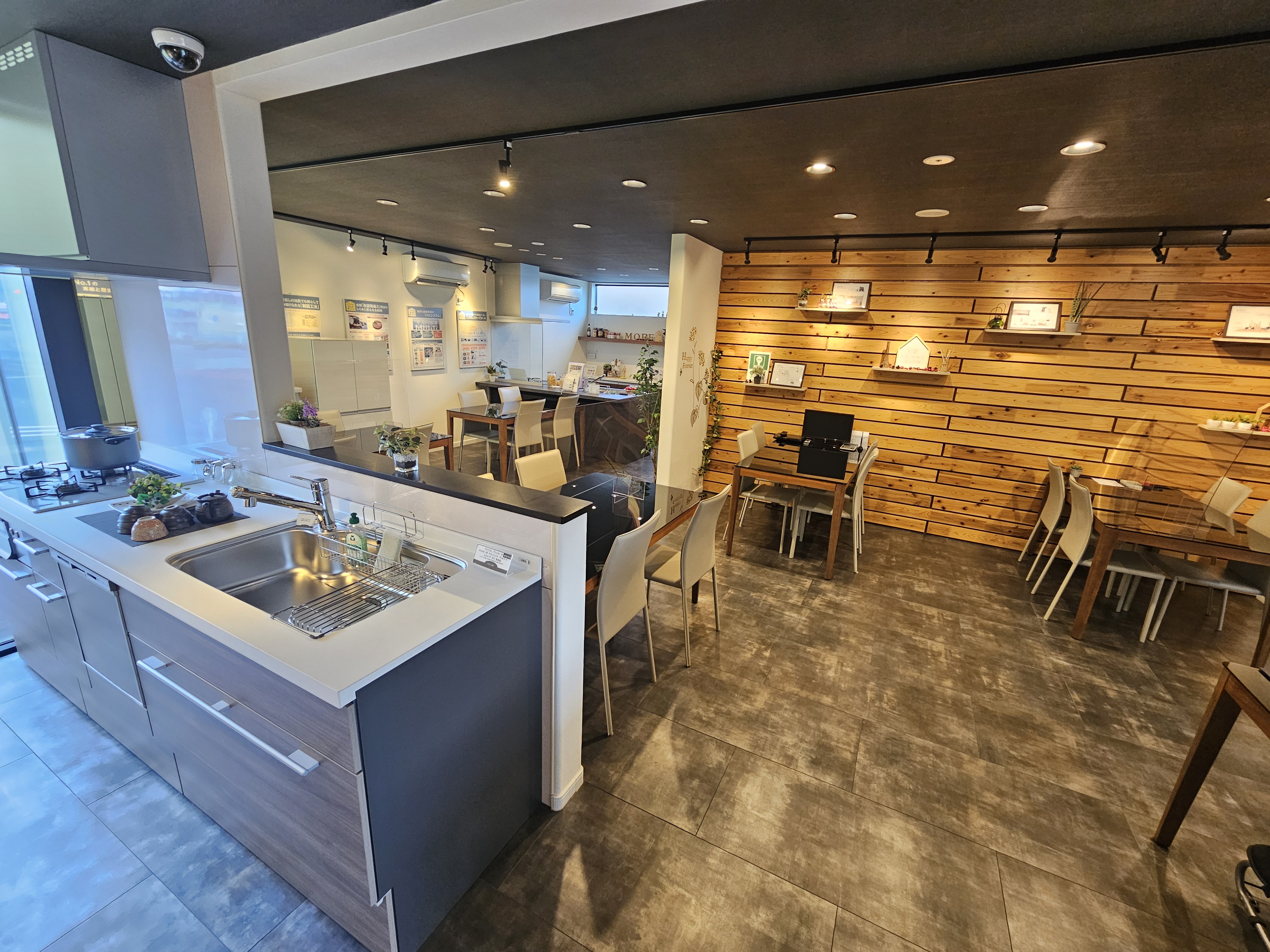 名二環(旧東名阪道)楠ICより車で約5分。国道41号線沿いの大変わかりやすい場所にあります。落ち着いた雰囲気の内装デザインで、3階建てのショールーム兼用モデルハウスで。住宅設備から床材、外壁材まで実物をご確認いただけます。是非ご家族おそろいでご来店ください。